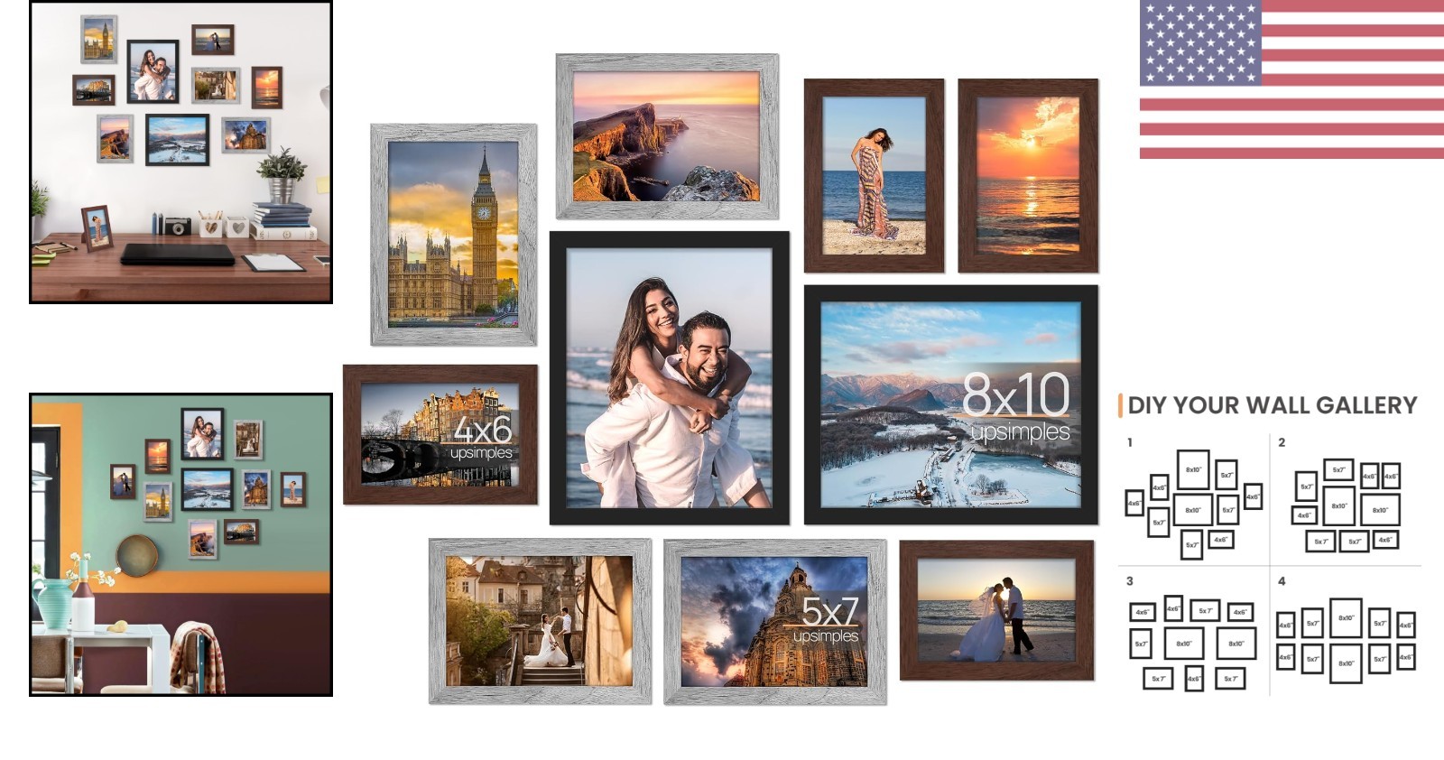как выглядит 10-Piece Decorative Picture Frame Set in Black, Gray, Brown for Unique Displays фото