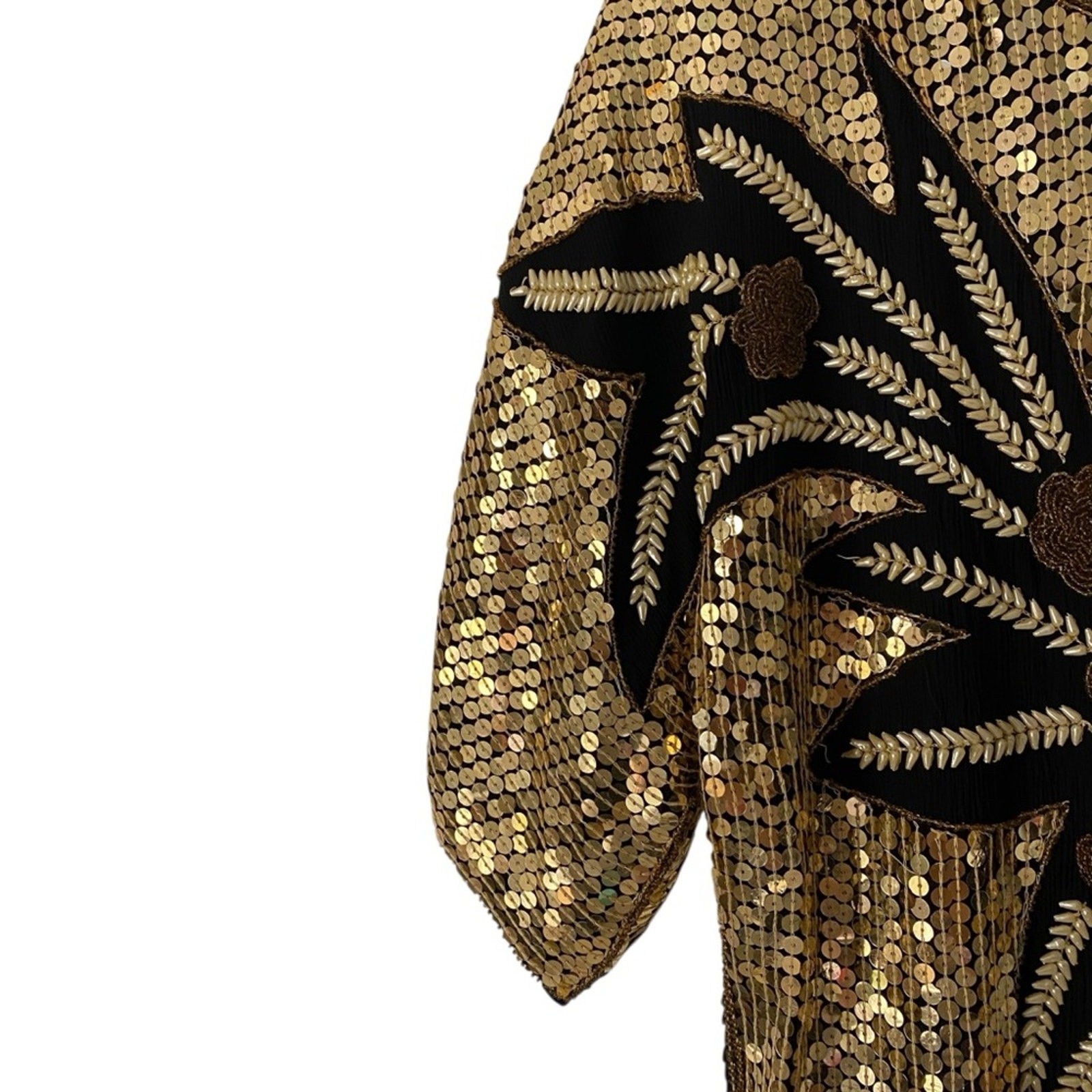 как выглядит Vintage Gold Sequin Floral Leaf Top Beaded Pearl Disco Blouse size small фото