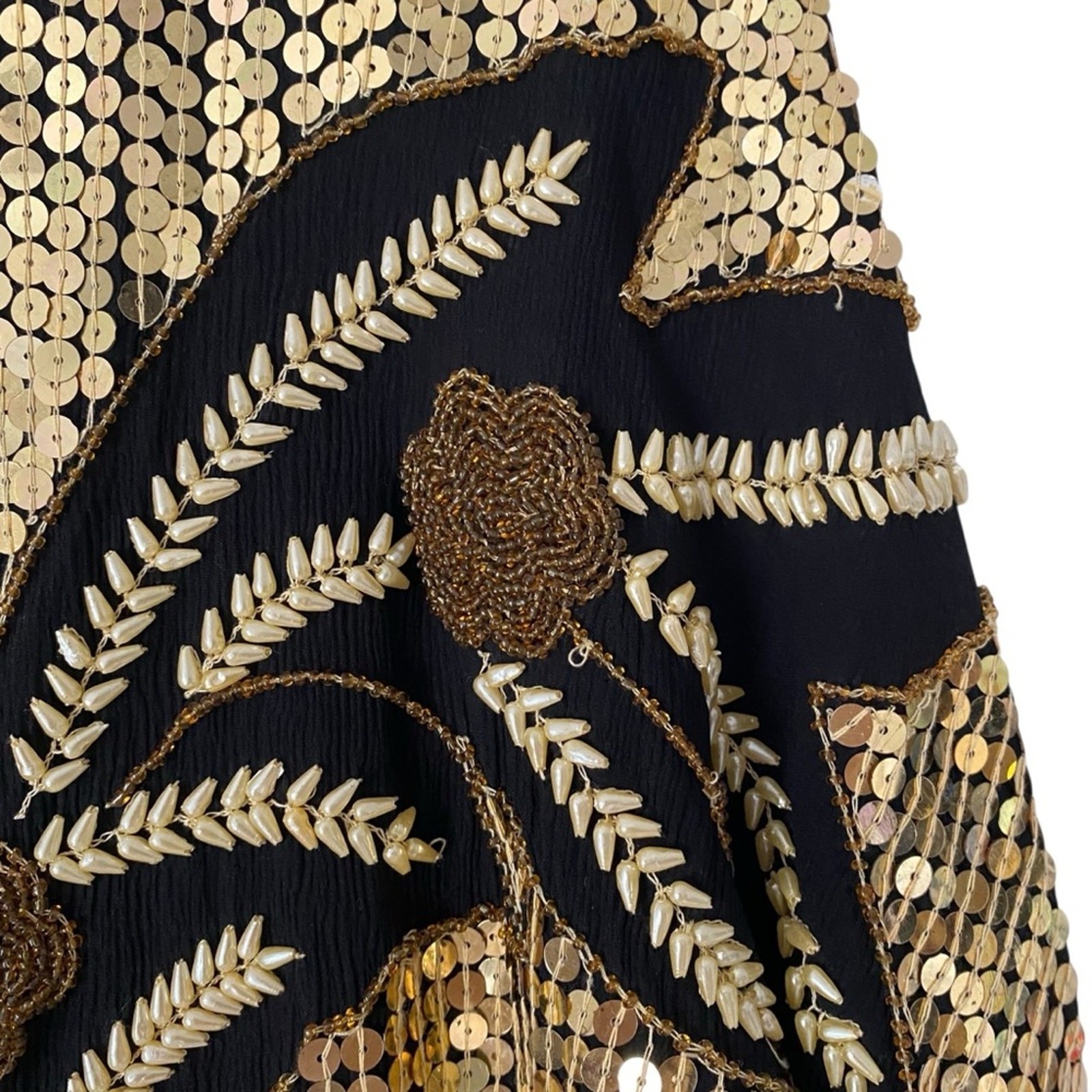 Vintage Gold Sequin Floral Leaf Top Beaded Pearl Disco Blouse size small