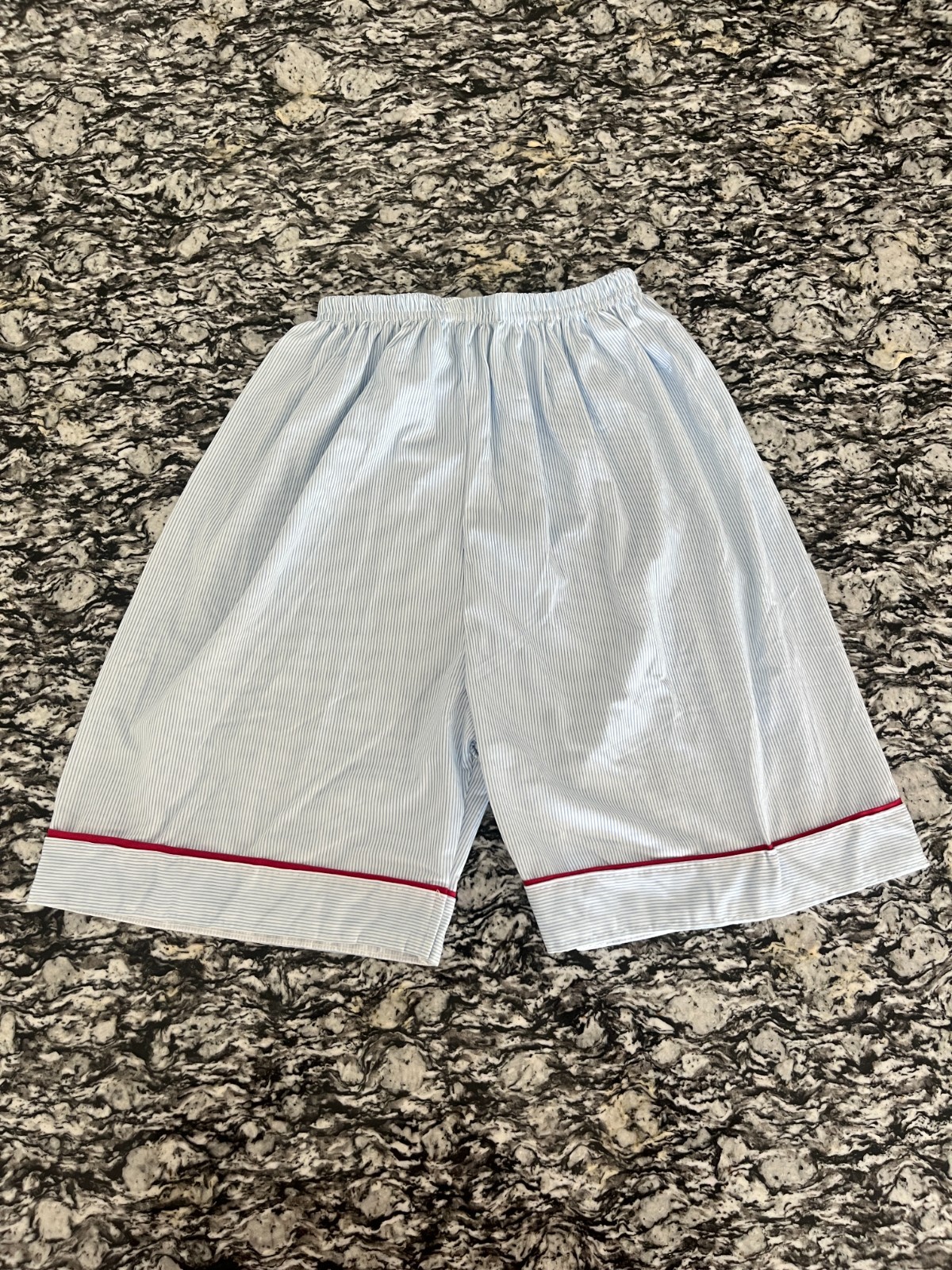 Unisex Kids 2 Casual Shorts Blue White Pinstripe Elastic Waist Pleated 5 Inseam