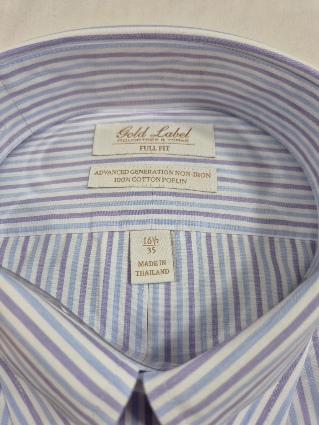 Roundtree Yorke Gold Label Men's Shirt Size 16.5 35 Purple Full Fit Poplin 59