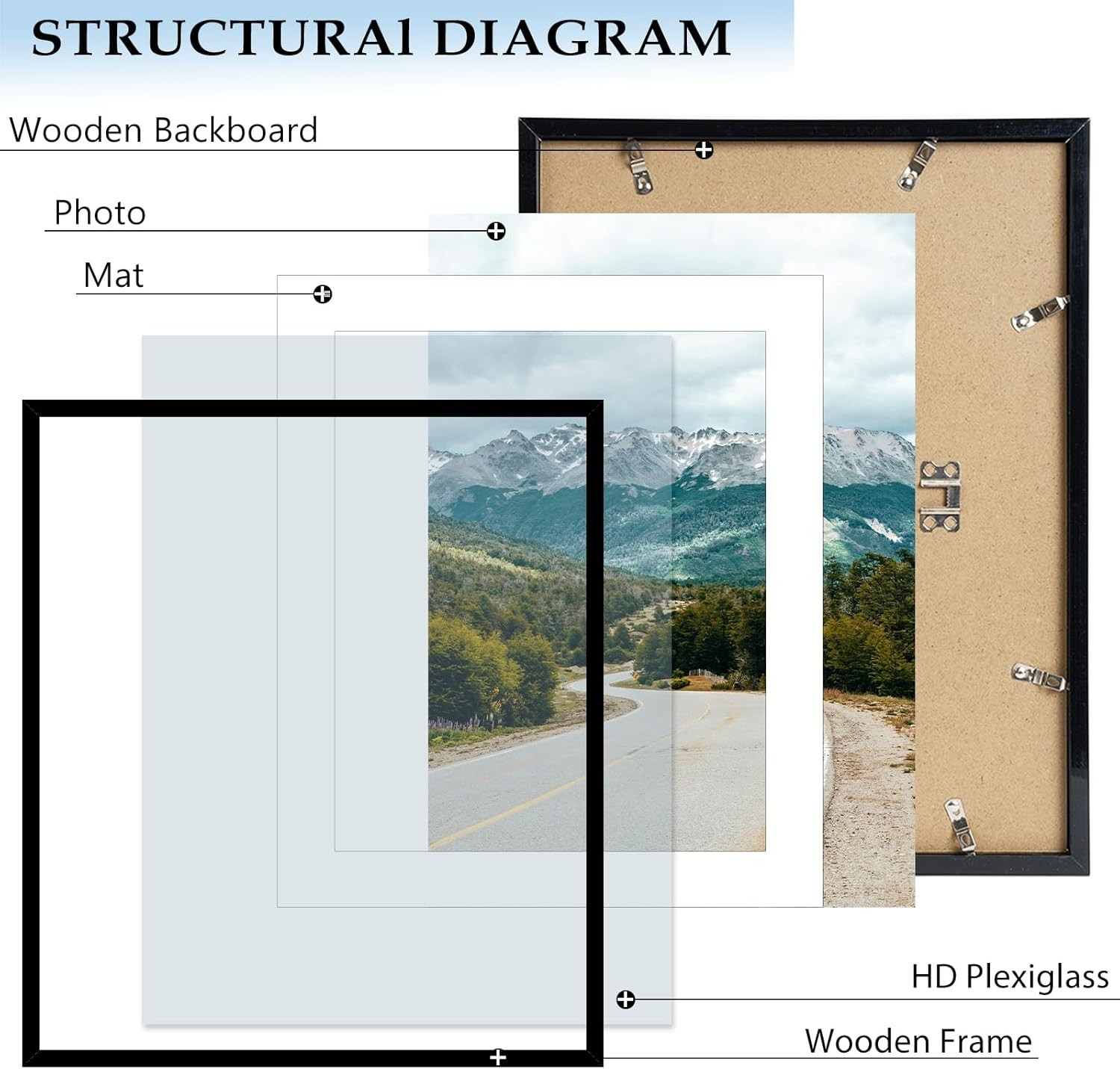 Wood 20x24 Picture Frame with 16x20 Mat Black, Display 16x20 with Mat or 20x2...