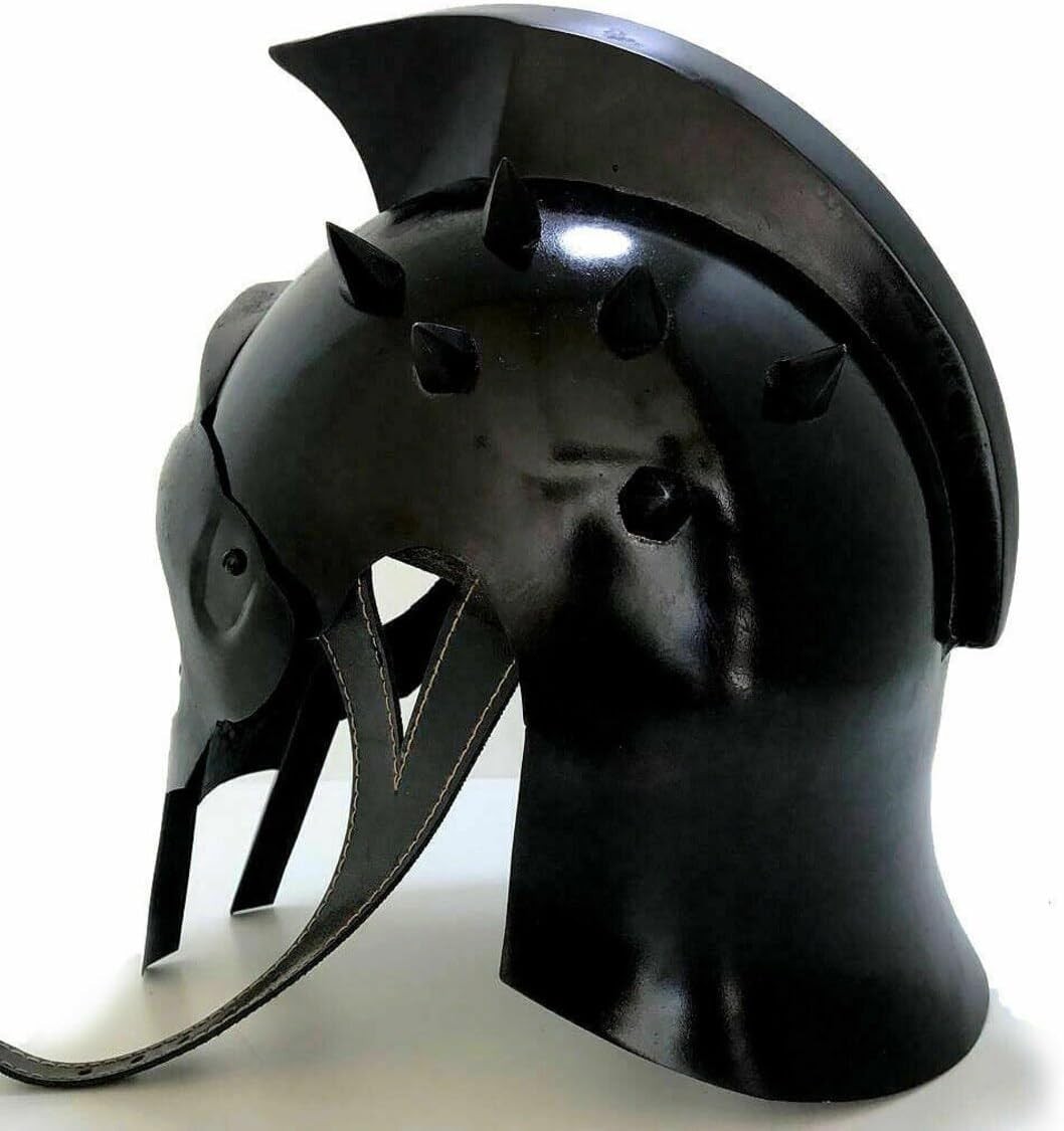 Generic Medieval Gladiator Crusader Black Helmet Armor Replica w/ Wooden Stand