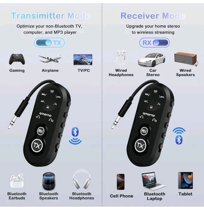 Airplane Bluetooth 5.4 Transmitter Receiver, 2-in-1 Airplane Bluetooth...