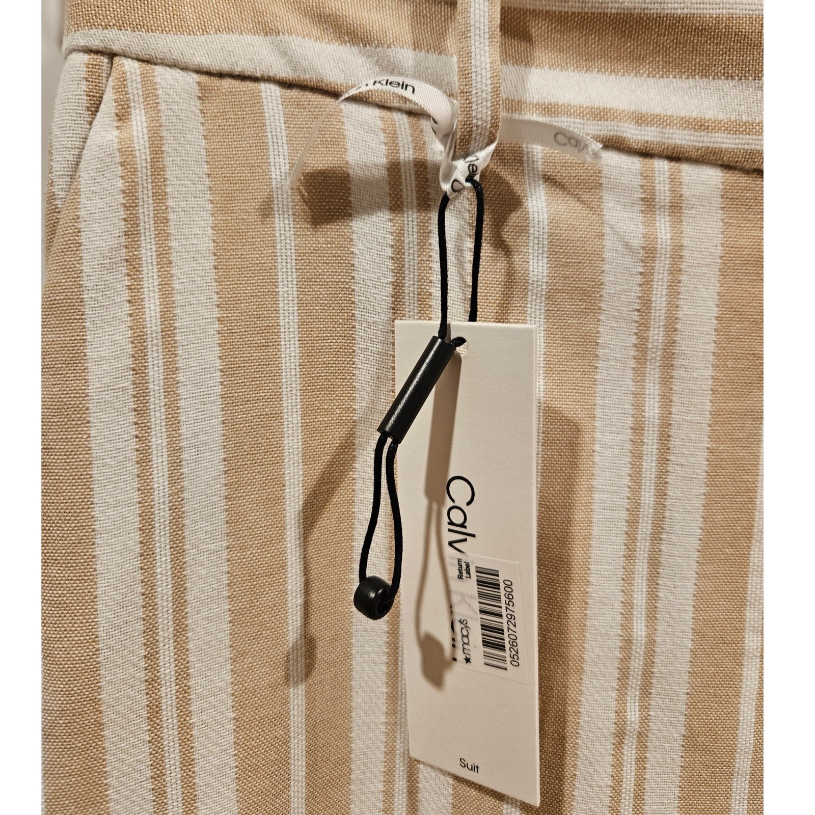NWT Calvin Klein Women Striped Wide Leg Pants Size 10 Linen Blend NEW