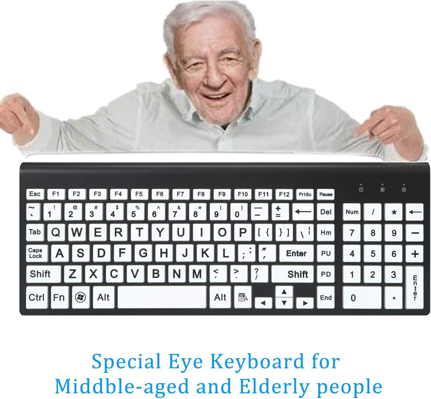 Ultra-Thin Wireless Keyboard with Large Print Keys - Perfect for Kids Seniors