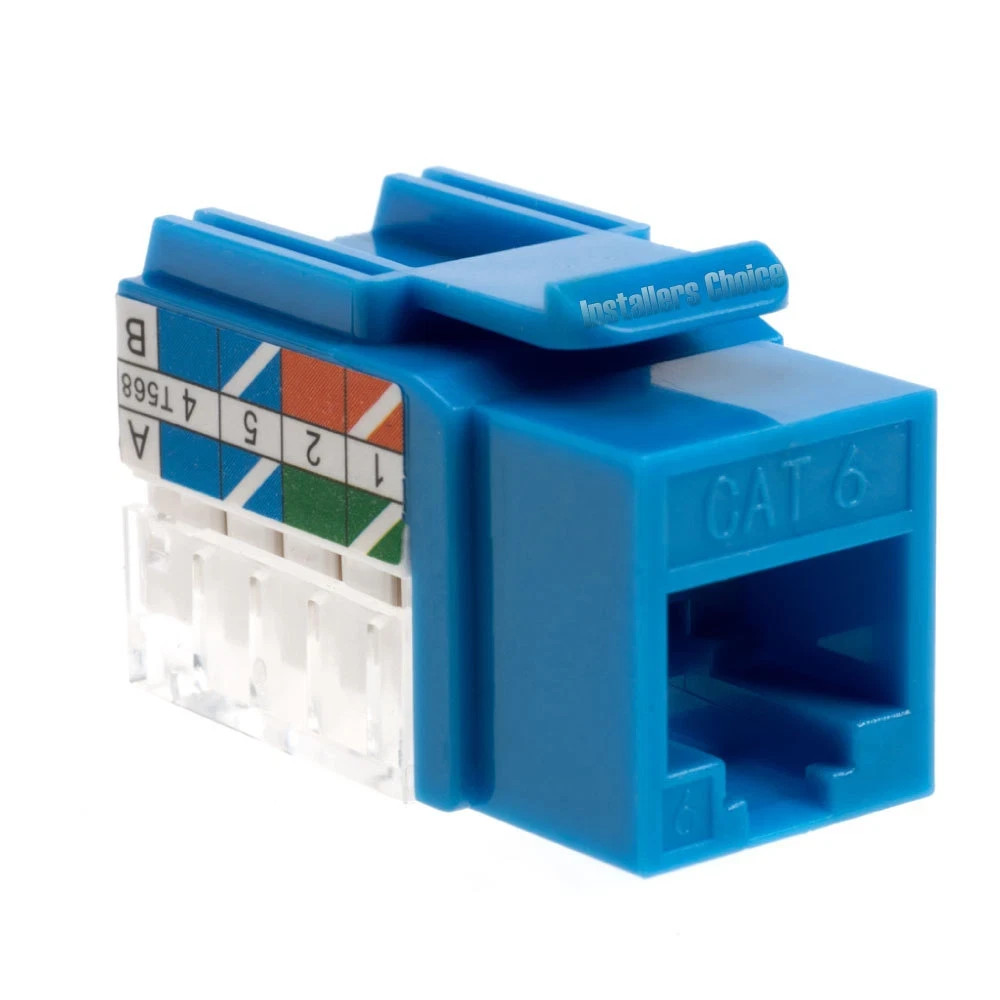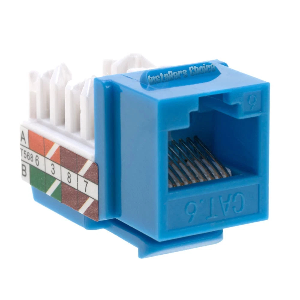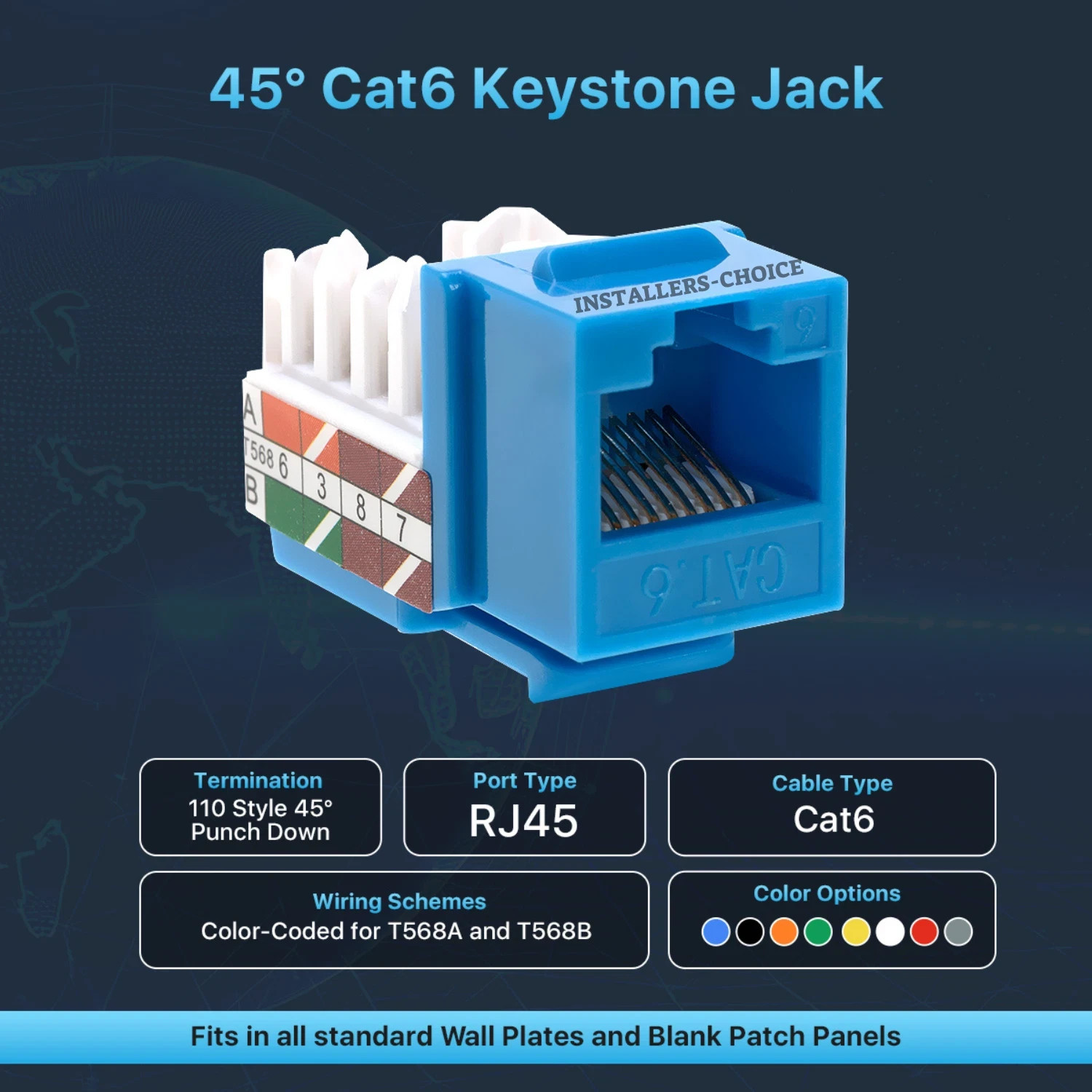 50 Pack Cat6 45 Angled Keystone Jack RJ45 110 Punchdown 8P8C Blue Ethernet