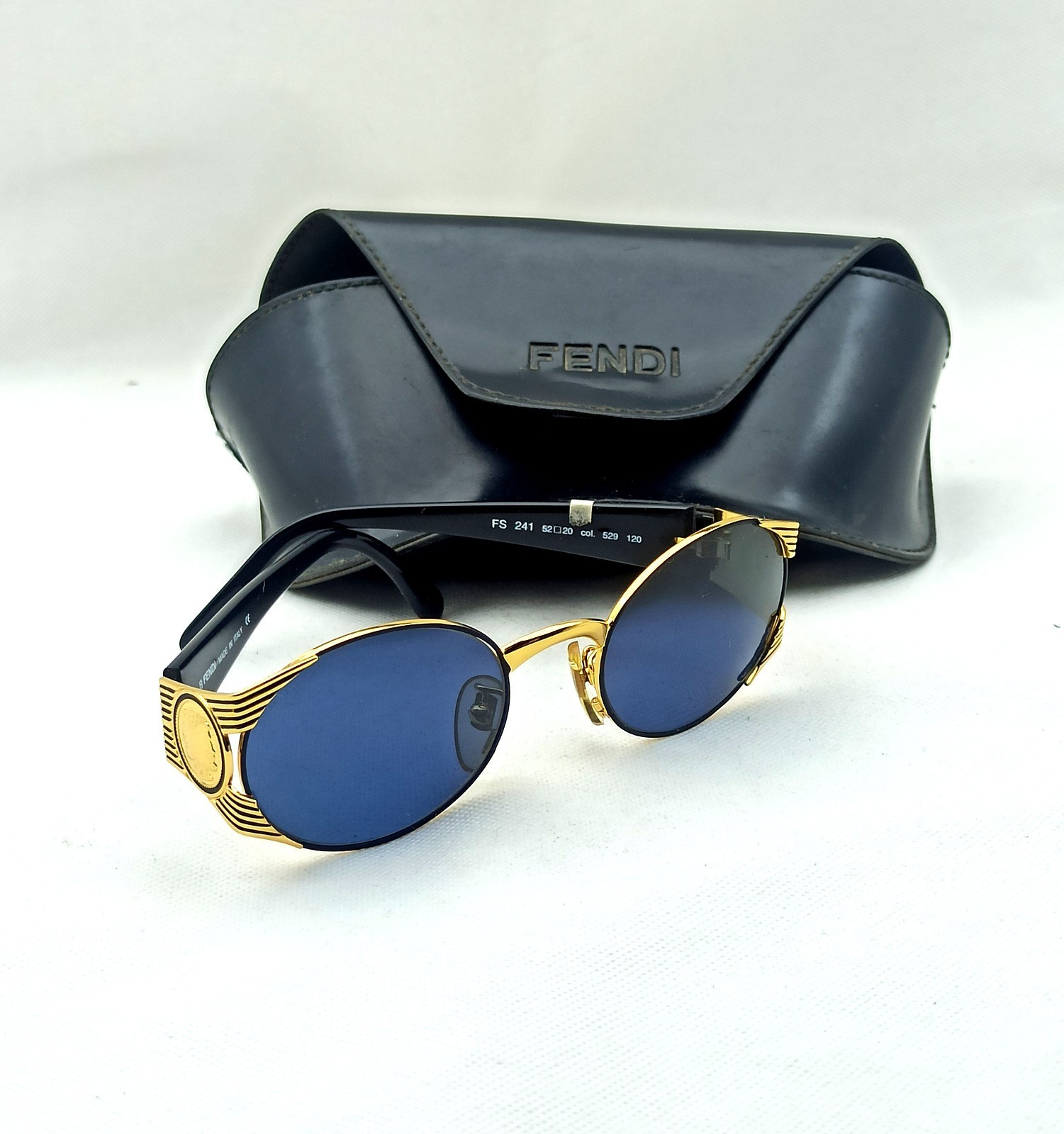 Vintage Fendi FS 241 Janus Medallion Sunglasses Gold / Black Rare Italy 80s