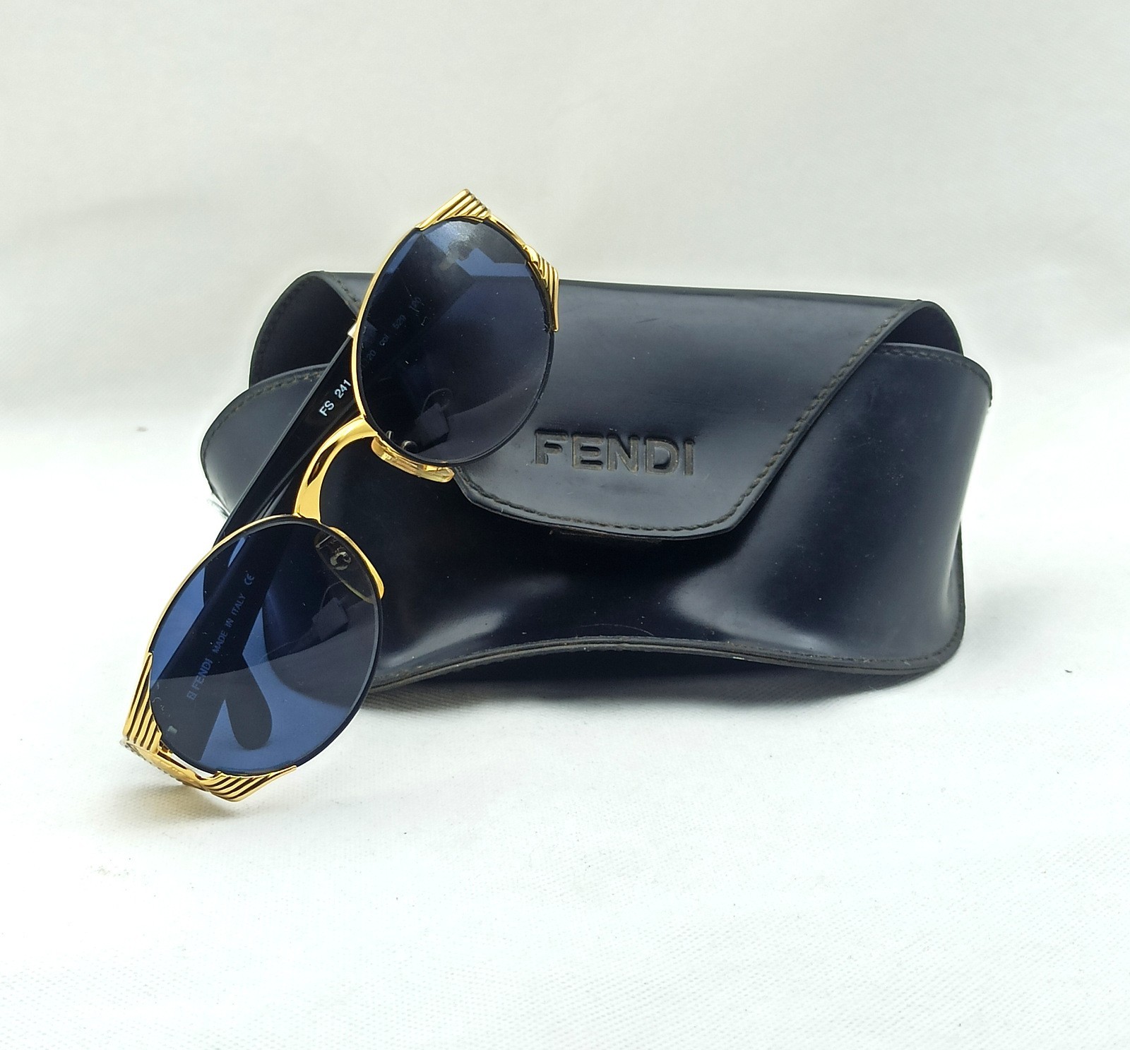 как выглядит Vintage Fendi FS 241 Janus Medallion Sunglasses Gold / Black Rare Italy 80s фото