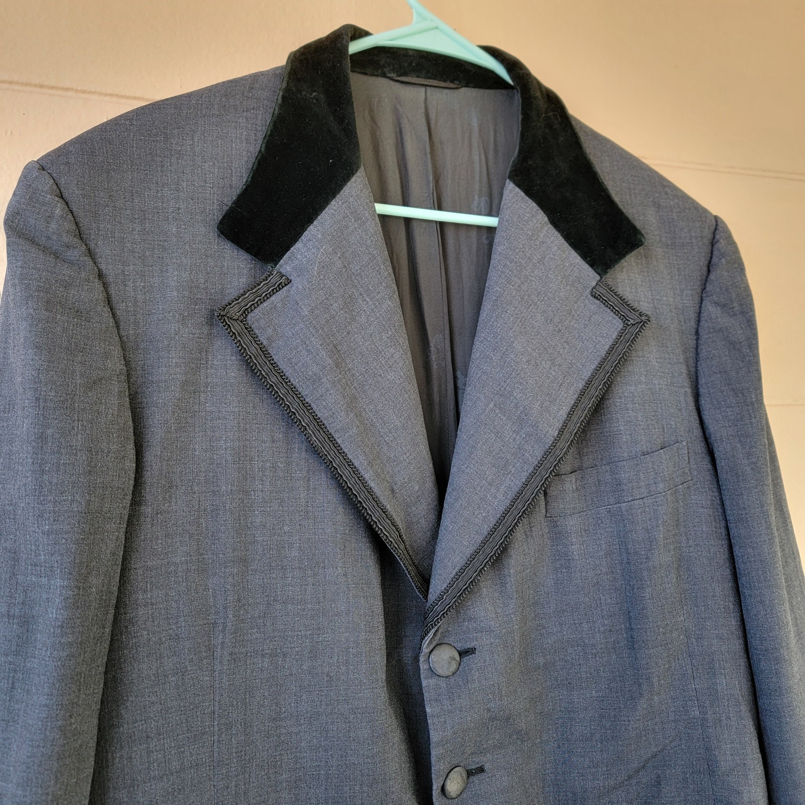 Vintage 70s Lord West Prince Edward Jacket Men 46 L Gray Tuxedo Velvet Lapel