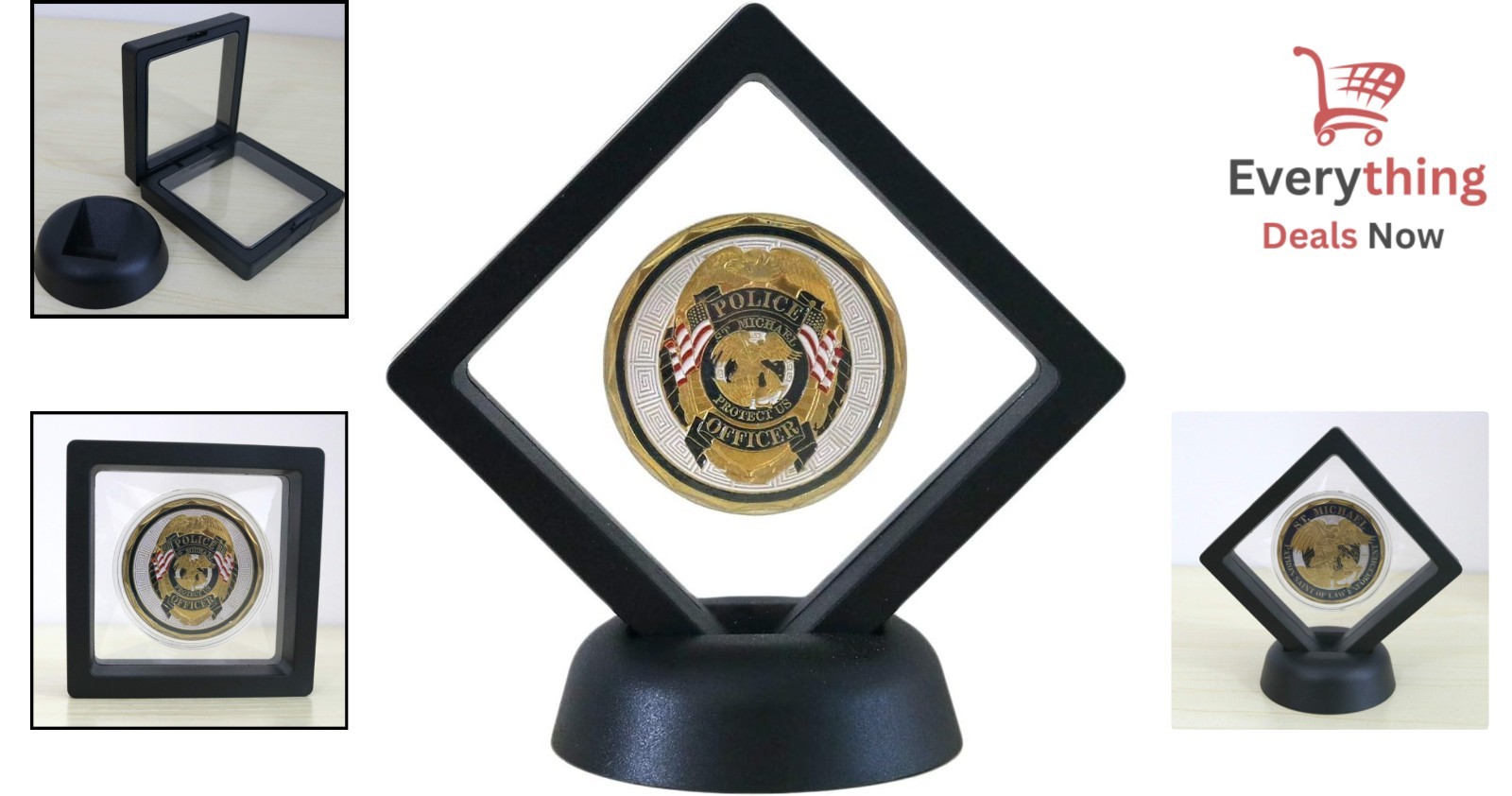 как выглядит 3D Floating Challenge Coin Display Case Frame Holder for Medals Jewelry Black фото