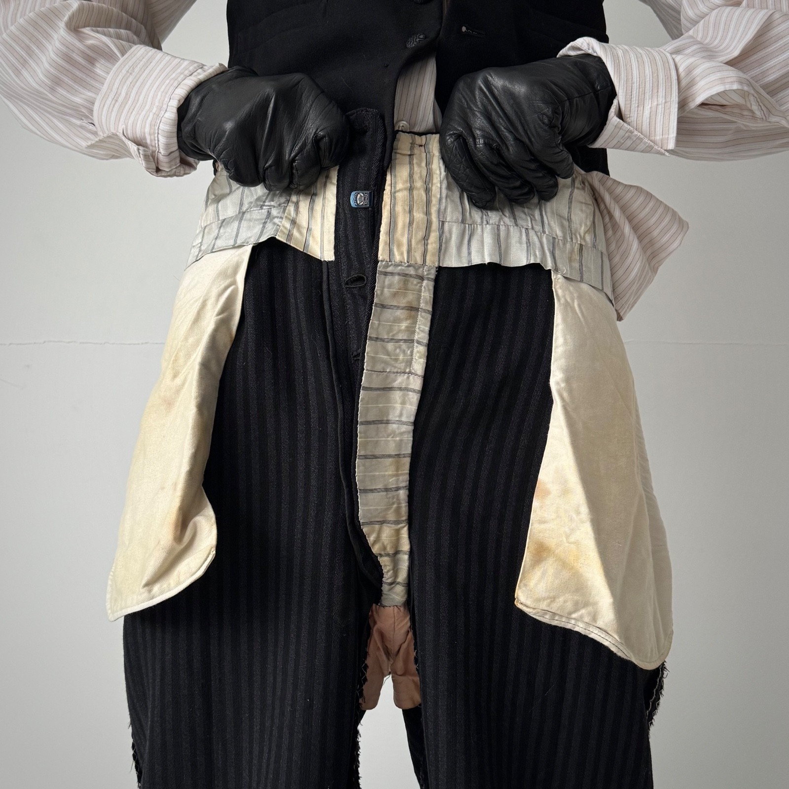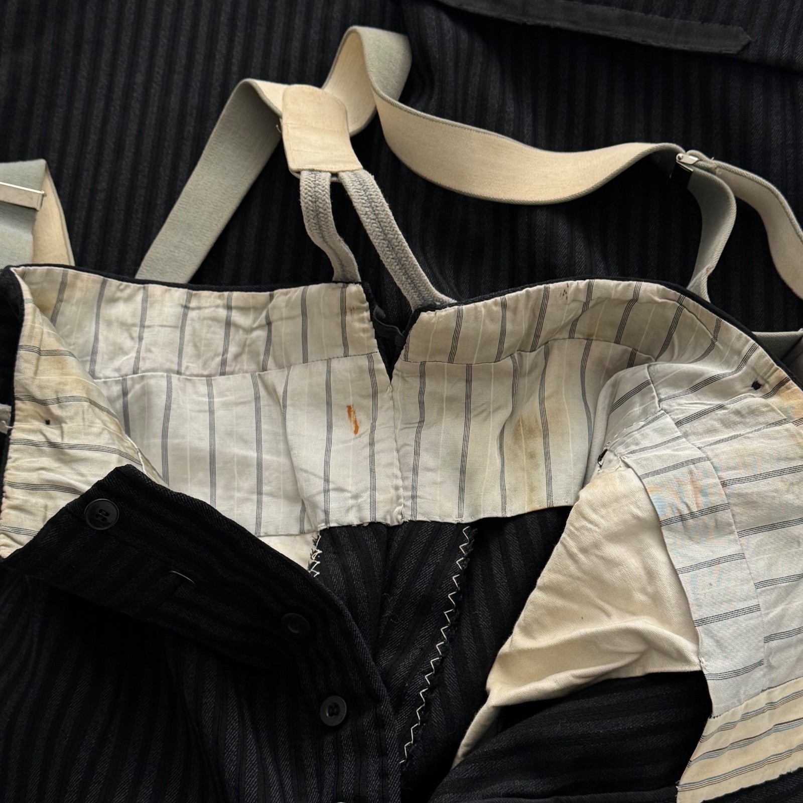 как выглядит Mens Vintage 1940s European Morning Fishtail Suspender Striped Suit Trousers фото