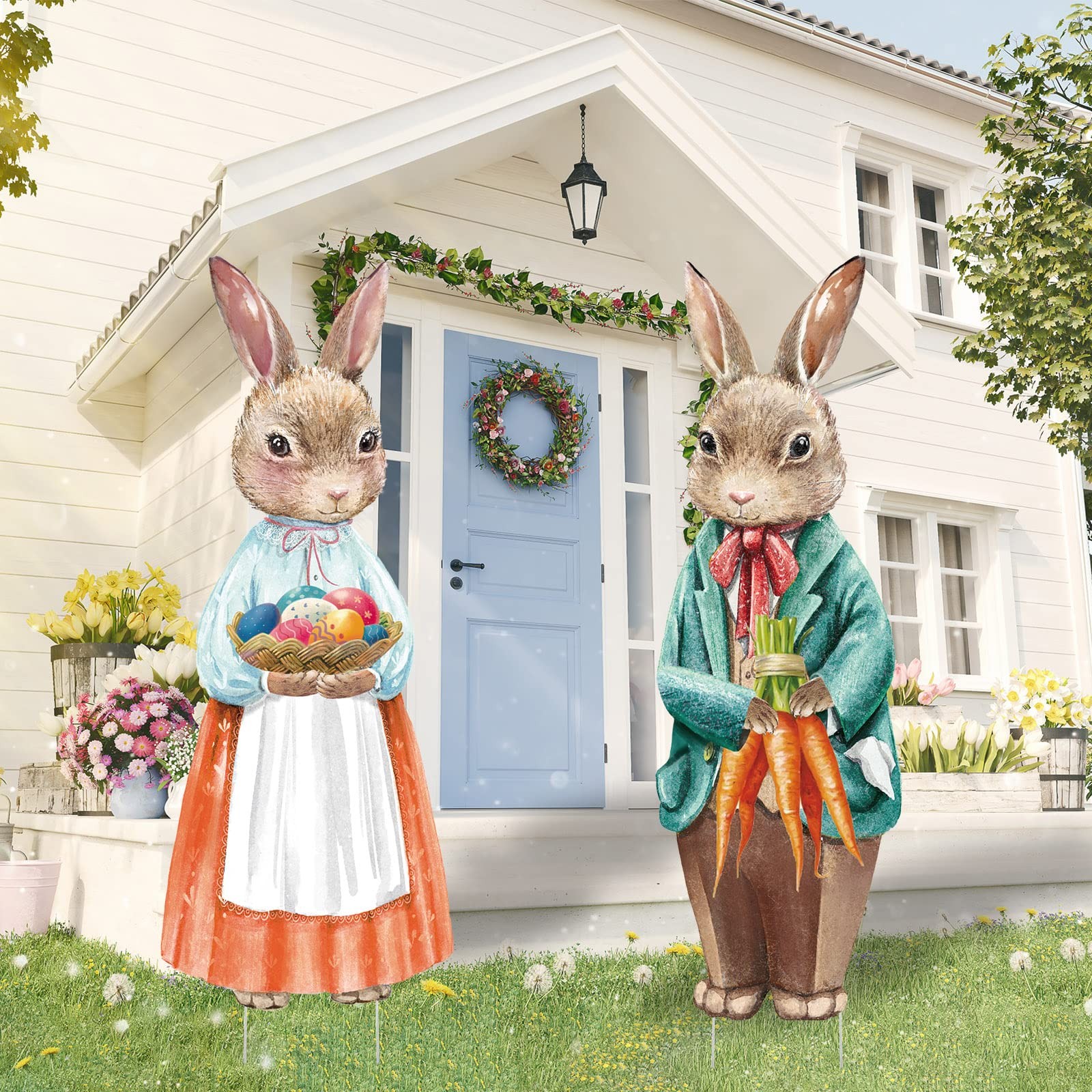 2 Pack Easter Decorations Outdoor Yard Signs Vintage Bunnies Easter Eggs Yard...