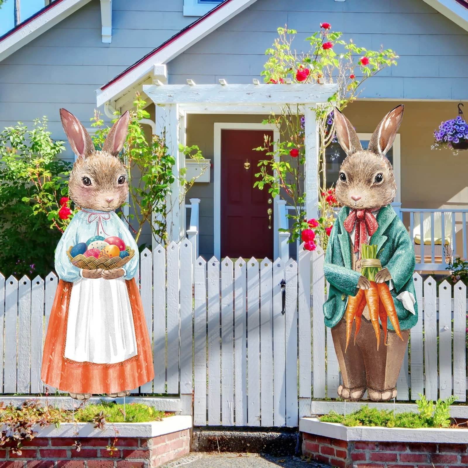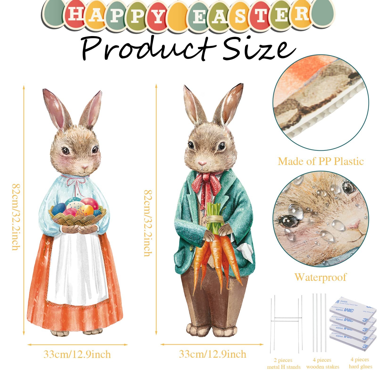 как выглядит 2 Pack Easter Decorations Outdoor Yard Signs Vintage Bunnies Easter Eggs Yard... фото