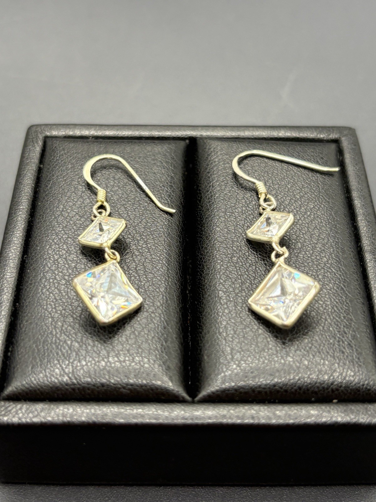как выглядит EUC Sterling Silver Cubic Zirconia Dangle Earrings 925 A29 фото