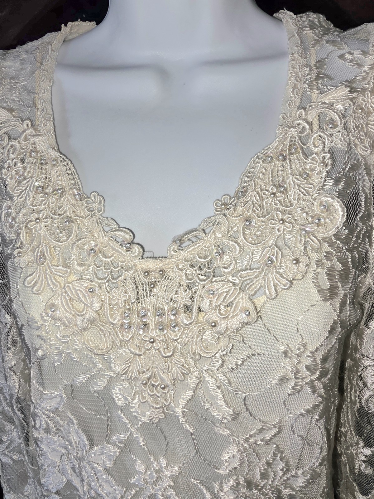 как выглядит Vintage Cachet by Bari Protas Womens Cream Beaded Lace Overlay Dress Size S/M фото