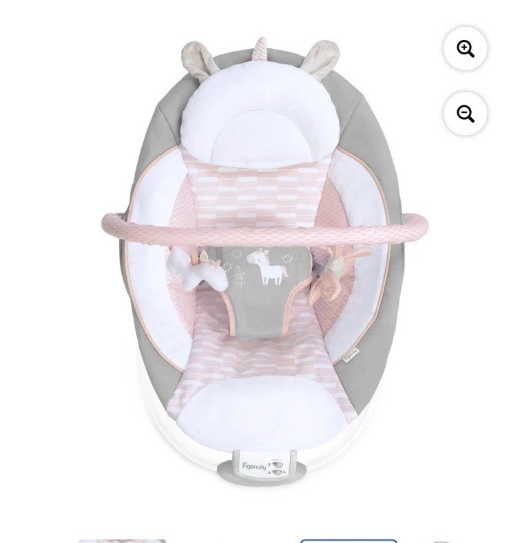 как выглядит NEW Ingenuity Flora the Unicorn Soothing Bouncer Plush Fabrics Melodies 0-6mo фото