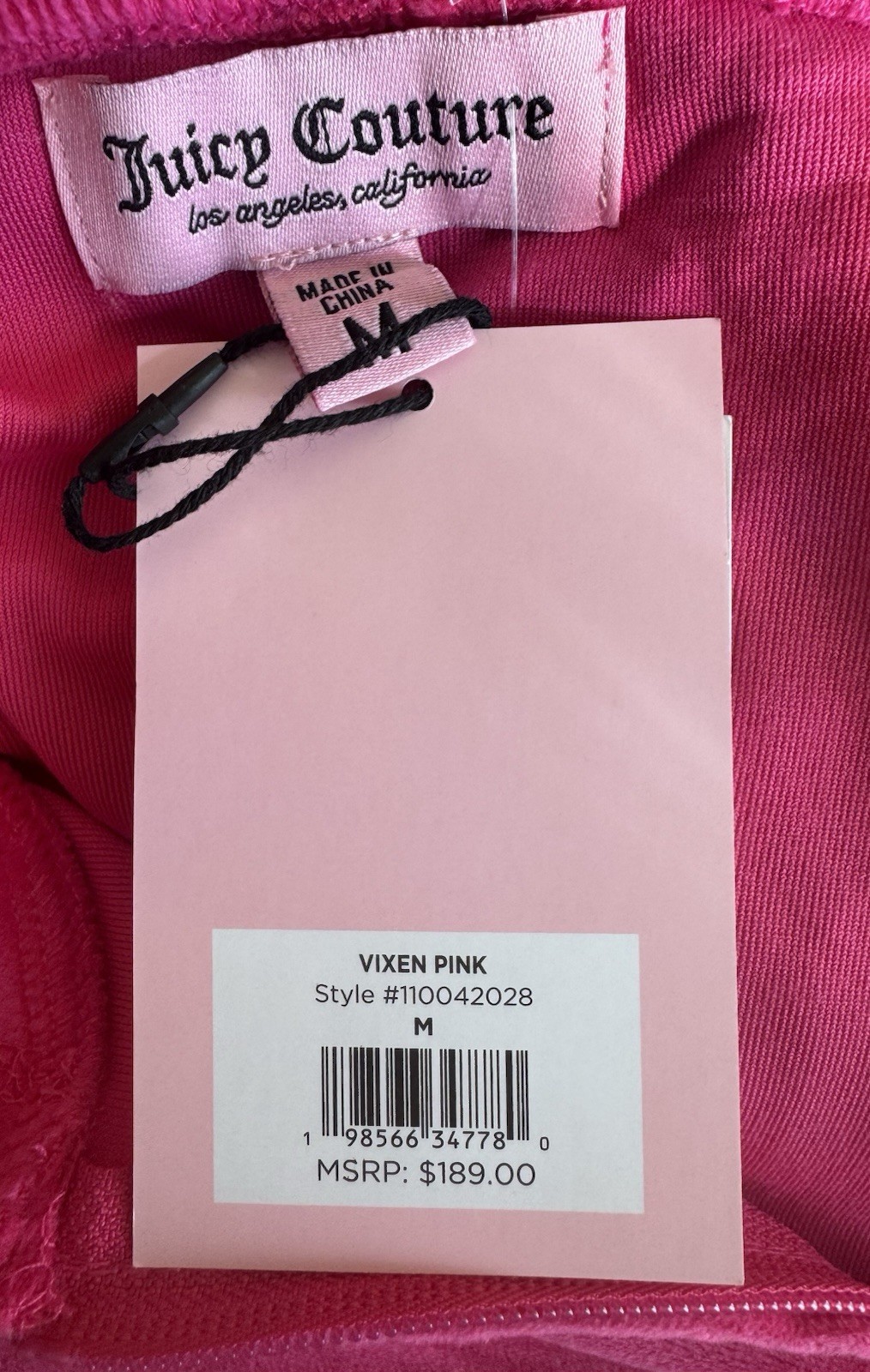 JUICY COUTURE M VELOUR TRACKSUIT HODDIE SHORTS SET Y2K OG BLING VIXEN PINK NWT