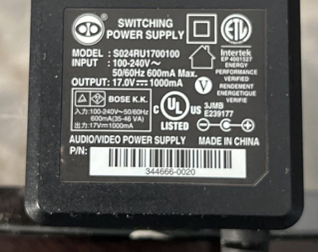 Genuine Bose 344666-0020 AC Adapter 17V 1A S024RU1700100 Power Supply 5.5x2.0 mm