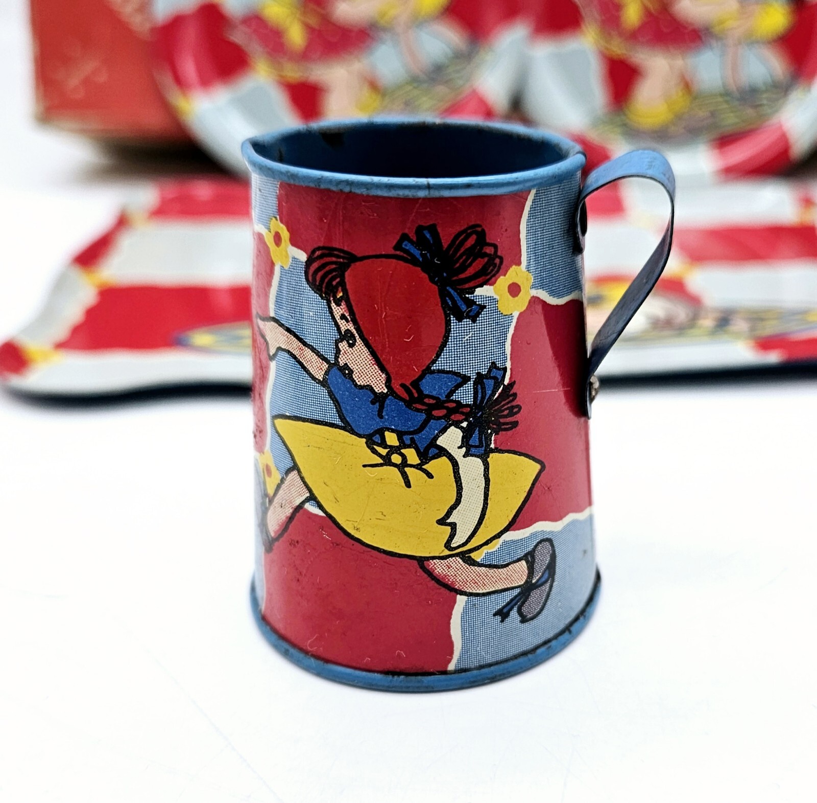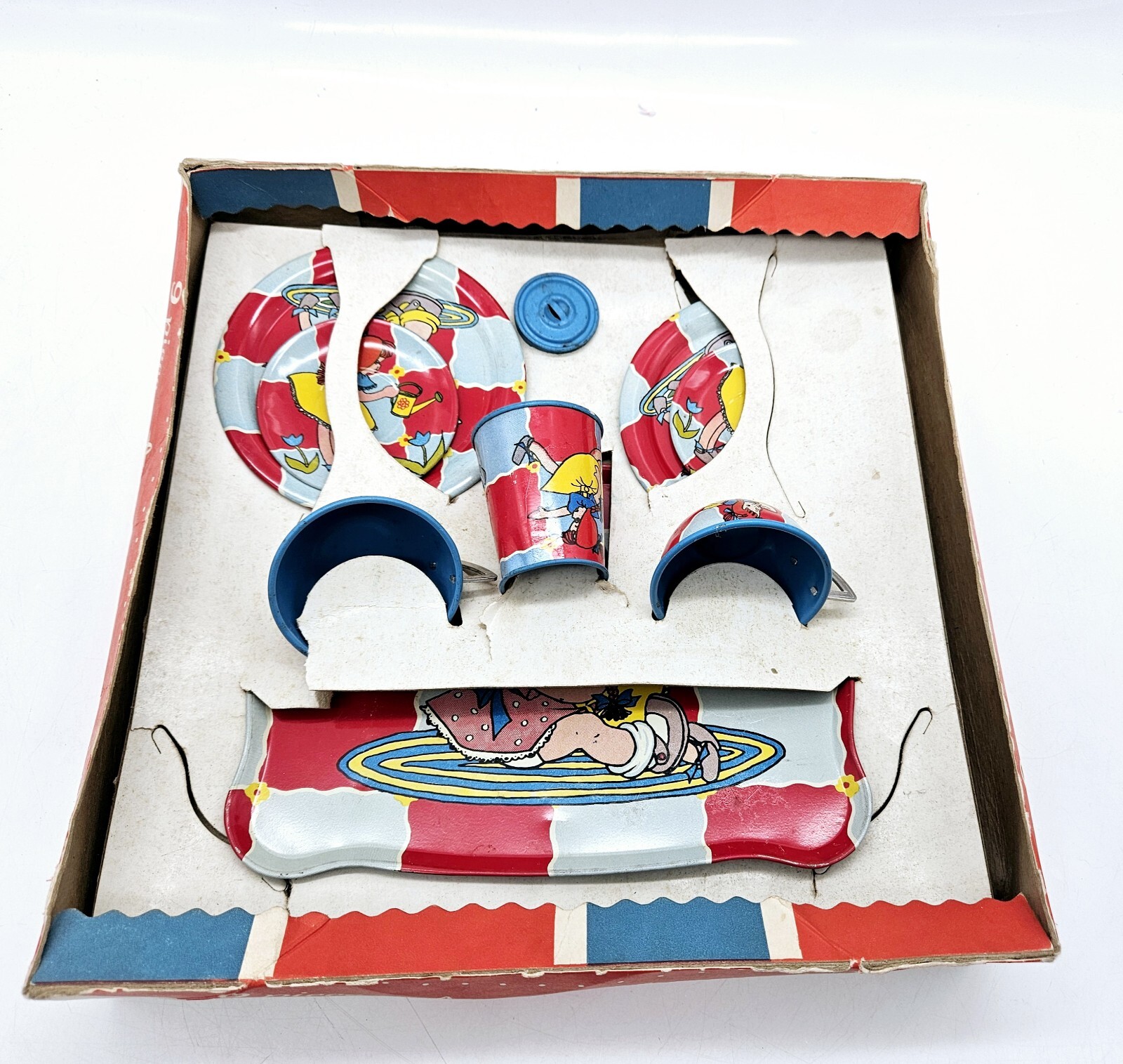 как выглядит Ohio Art Tin Litho Tea Set 9 Pieces 63 Complete in Original Box фото