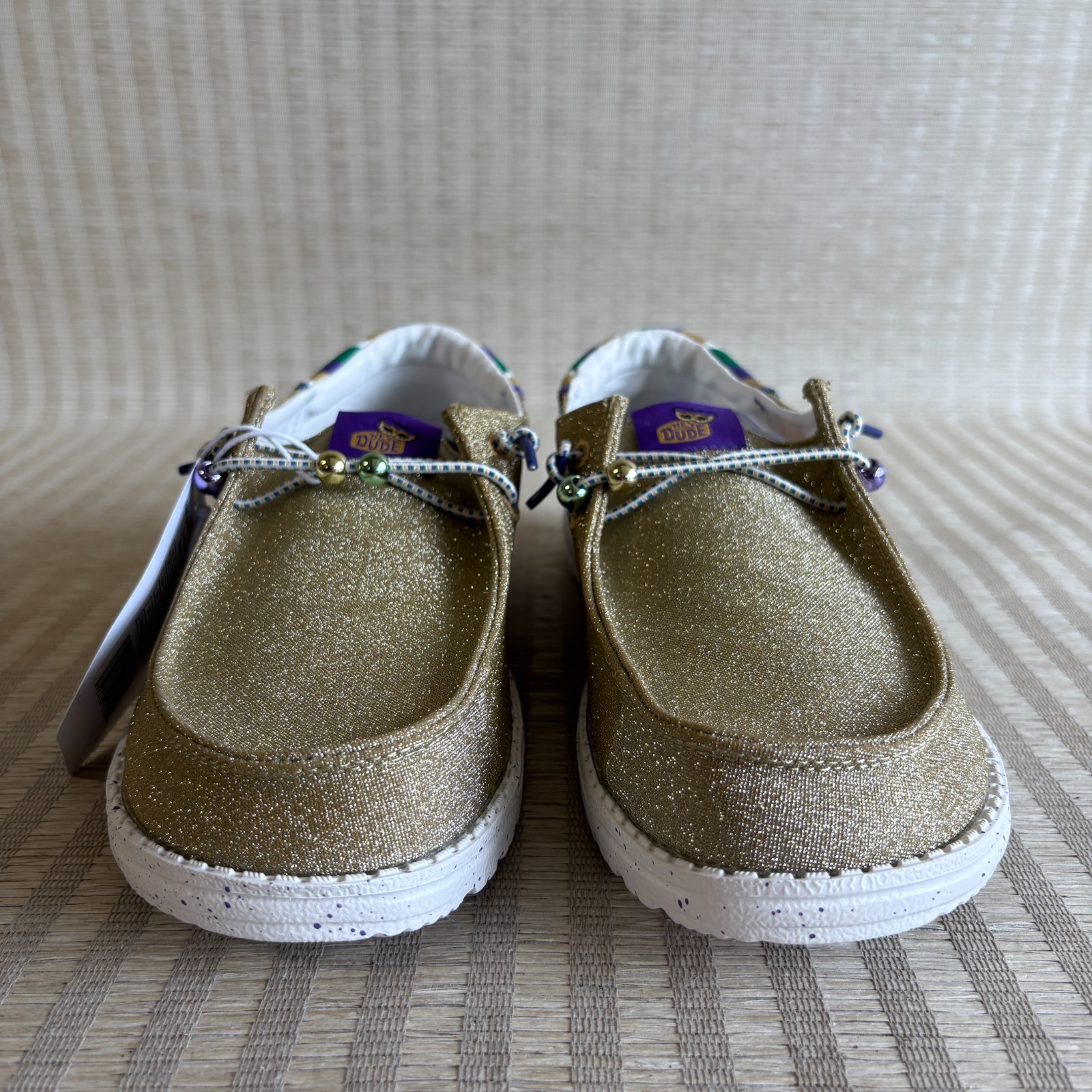 Hey Dude Wendy Funk Mardi Gras LSU Shoes Womens Size 8 Gold Lightweight Loafers
