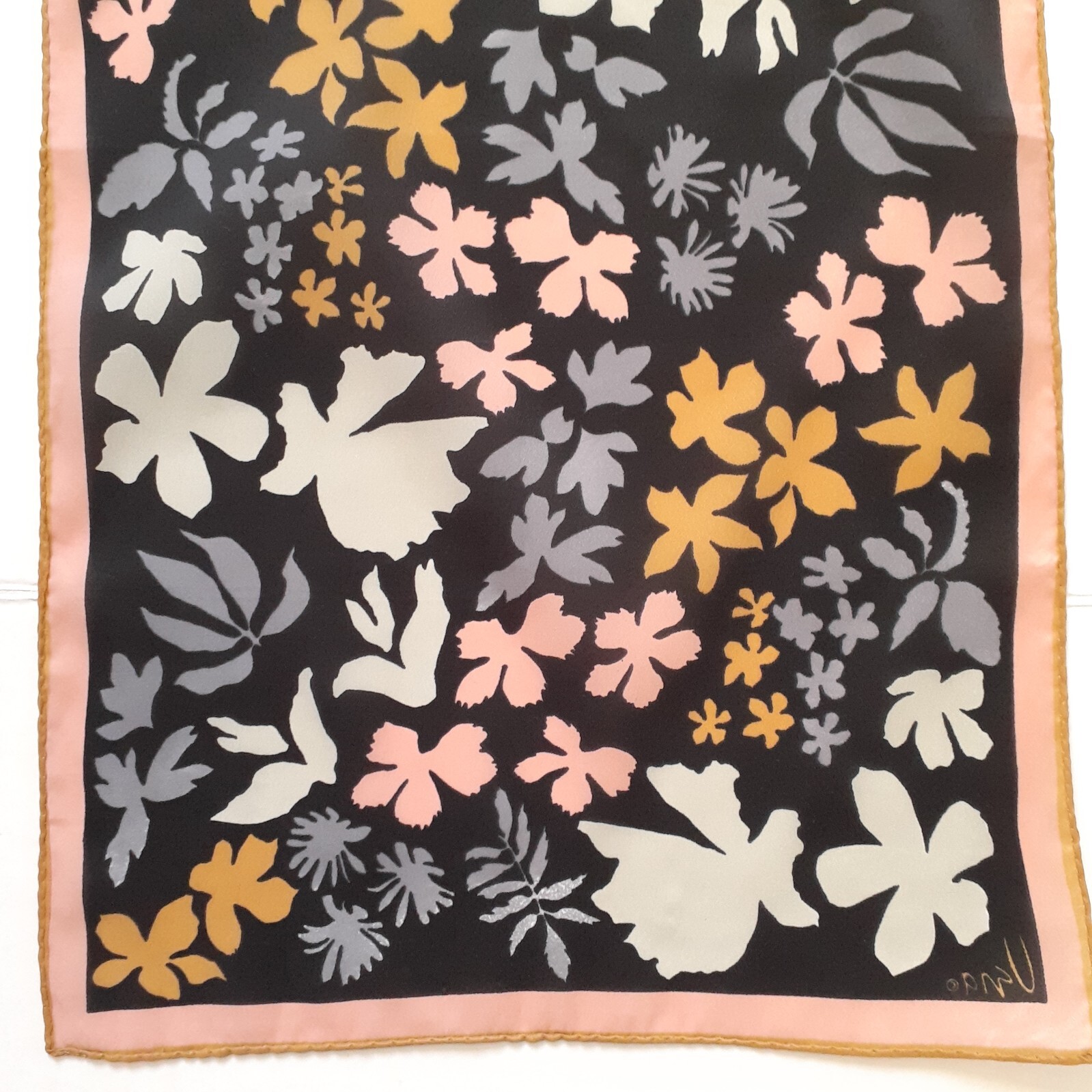 как выглядит Vintage Vera Neumann Floral Long Rectangle Scarf Black Pink Blue 44" x 12.5" фото
