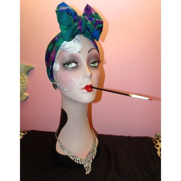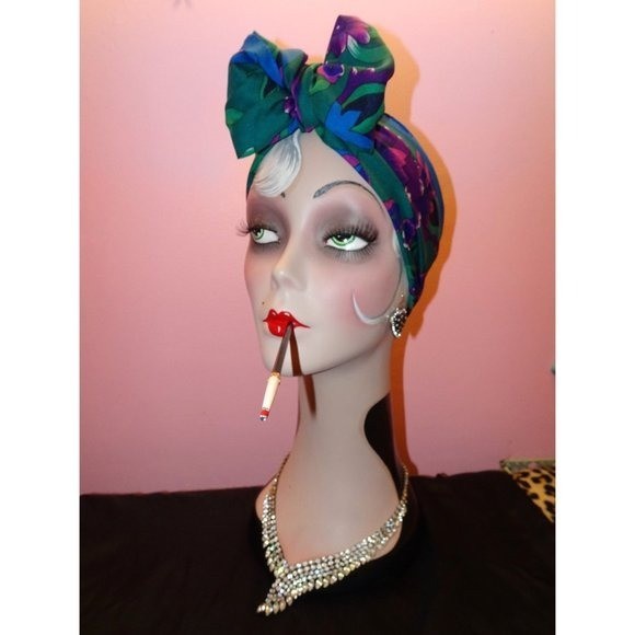 Vintage Purple Blue Floral Scarf pinup retro rockabilly head wrap bow neck