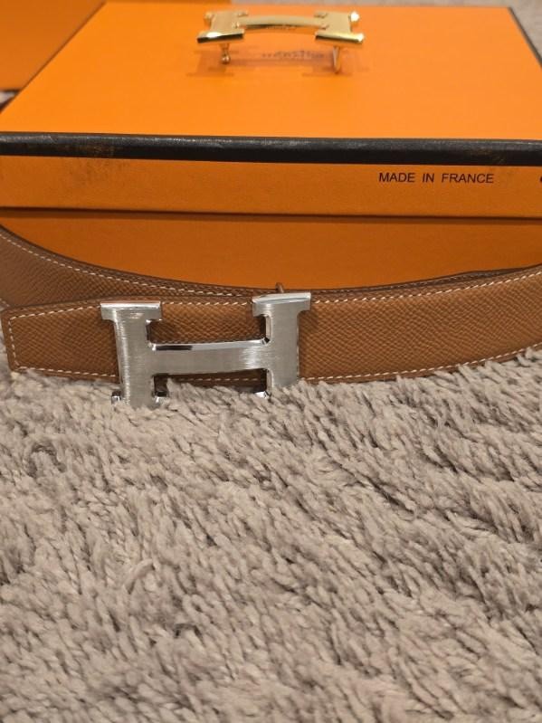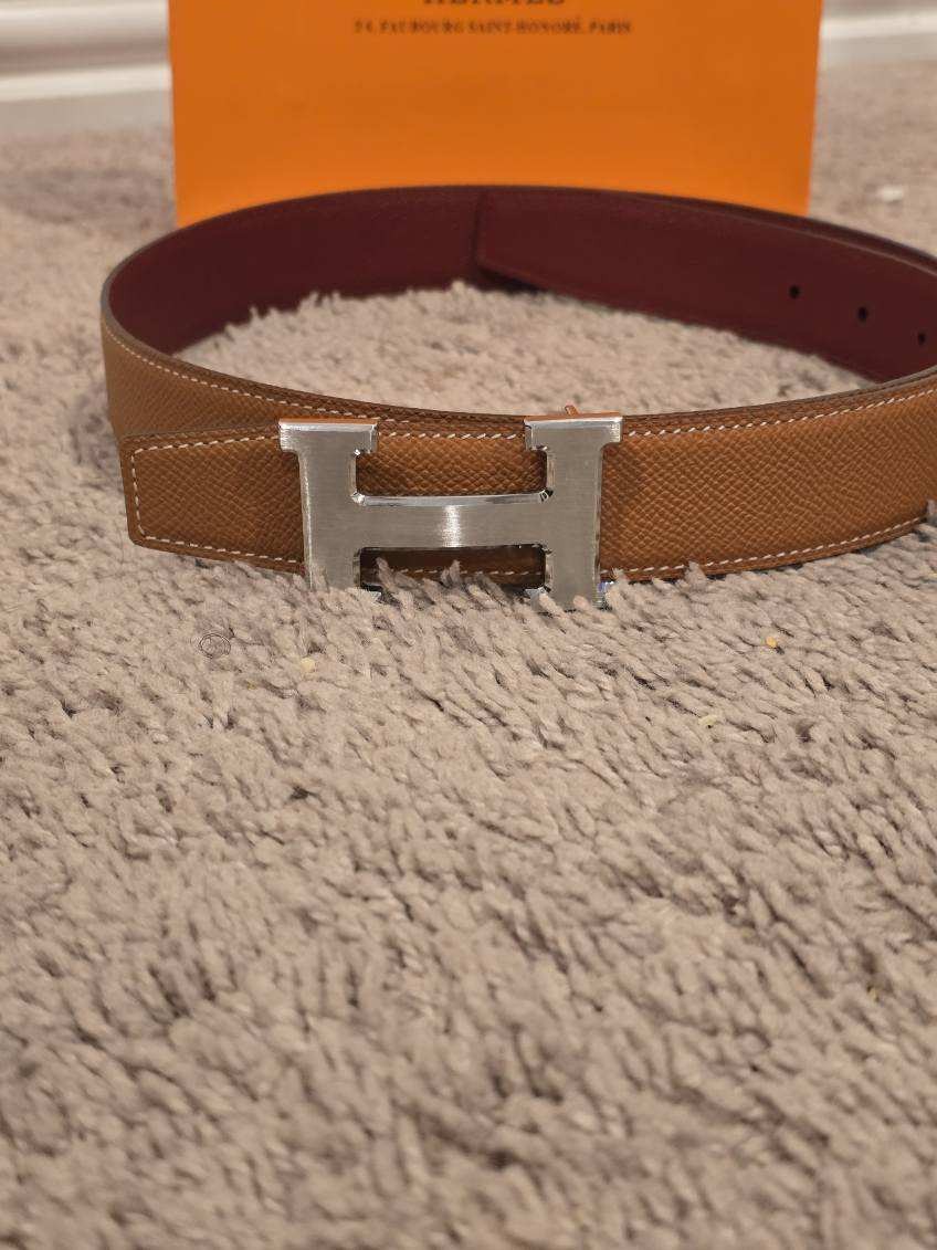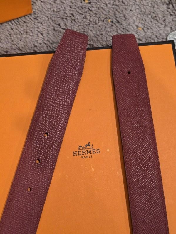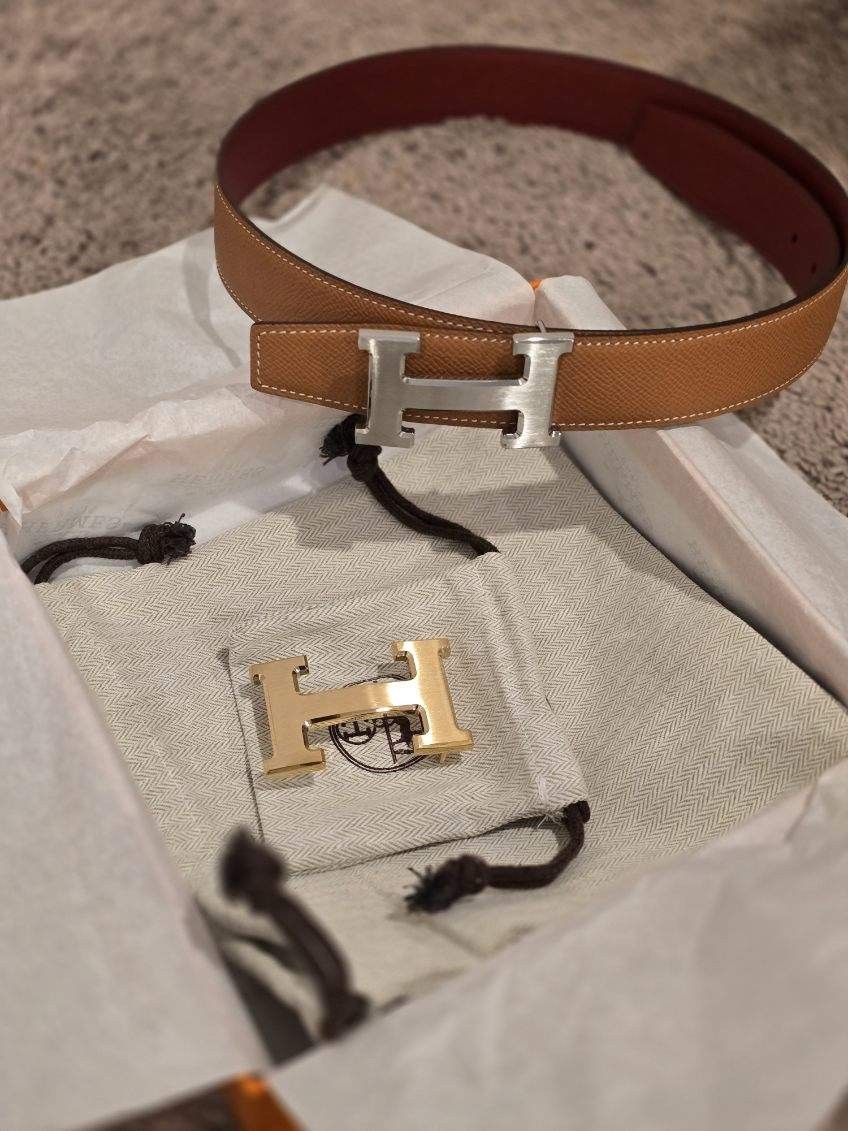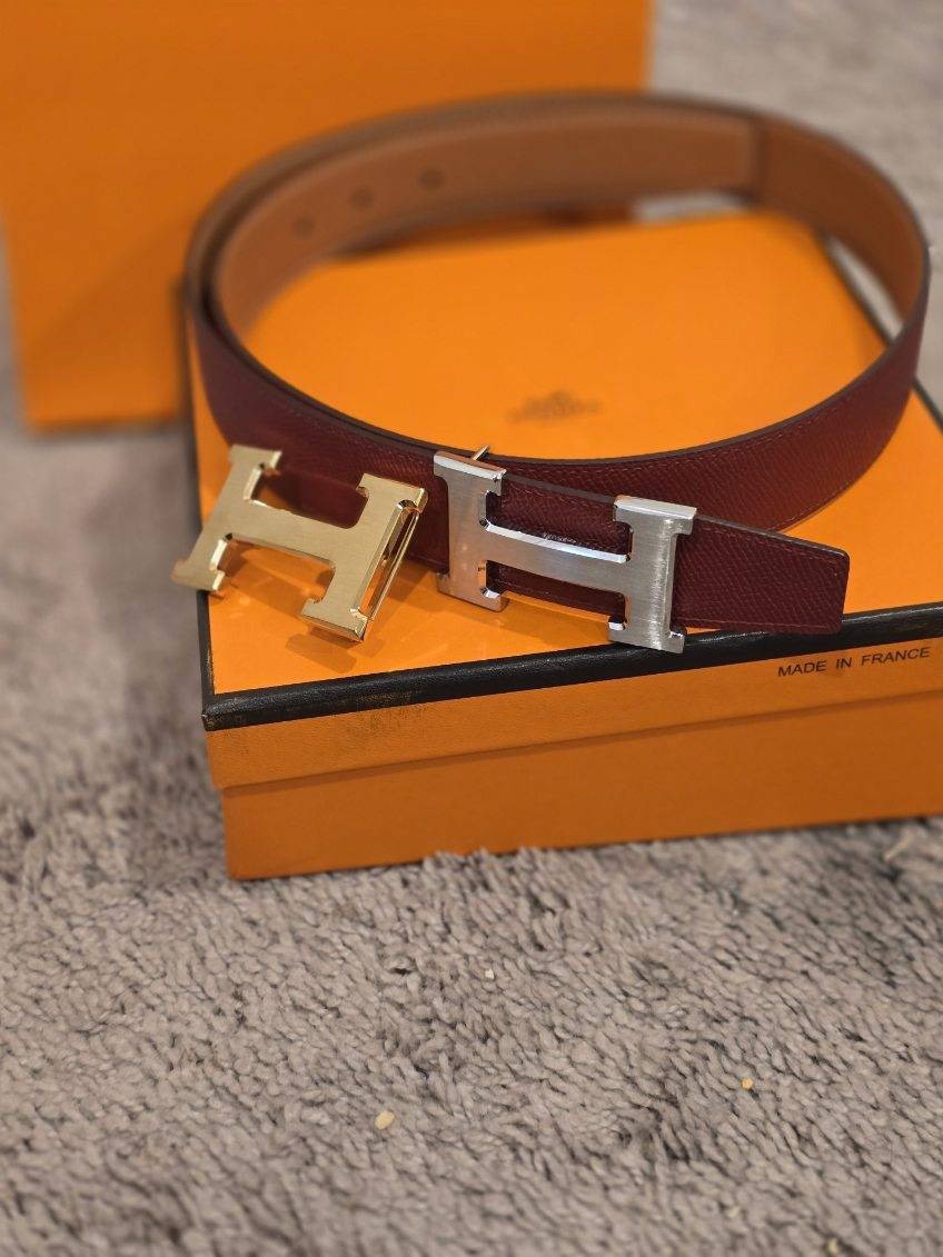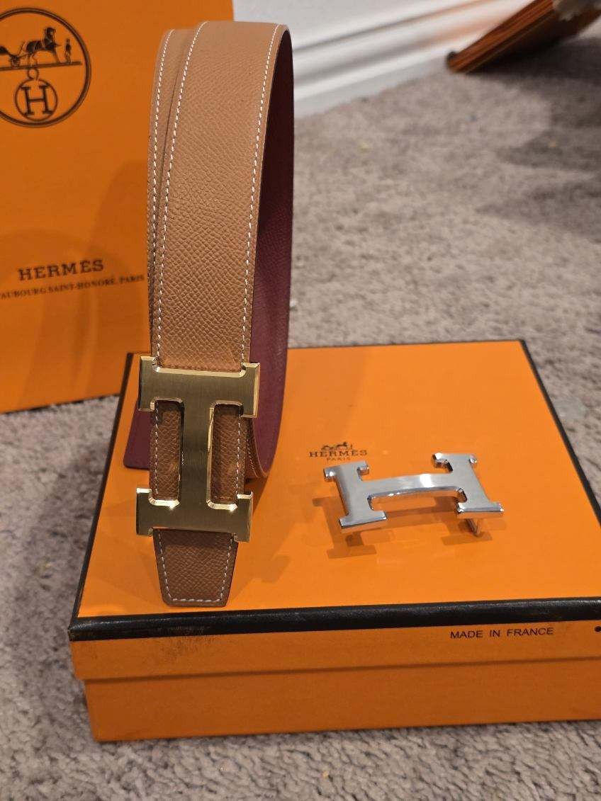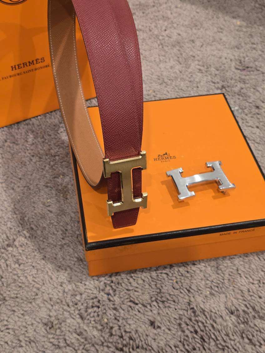 как выглядит Hermes Belt Mens 90cm Brown Reversible Burgundy With Gold silver Matte Buckles фото