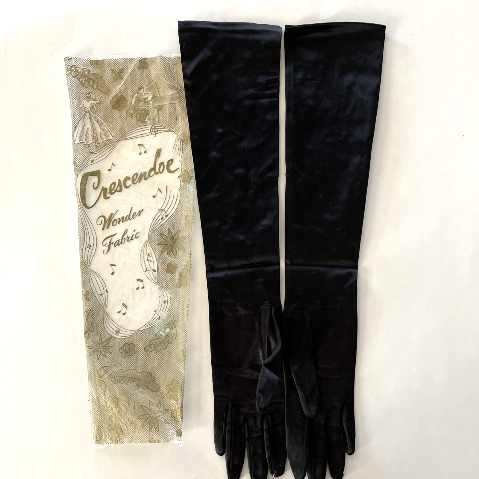 Vintage Crescendoe Beaded Long Black Gloves 18 inch length Wonder Fabric Small