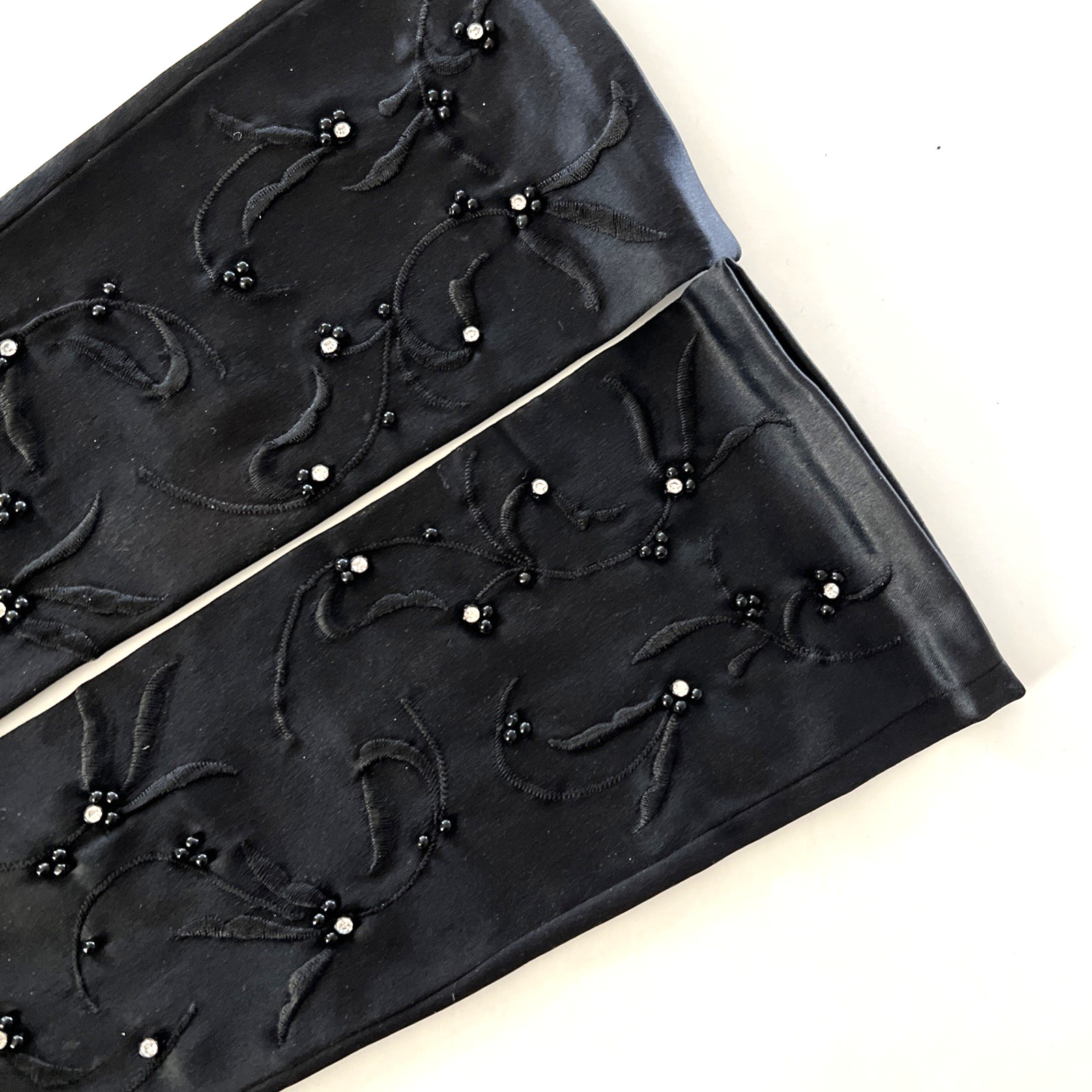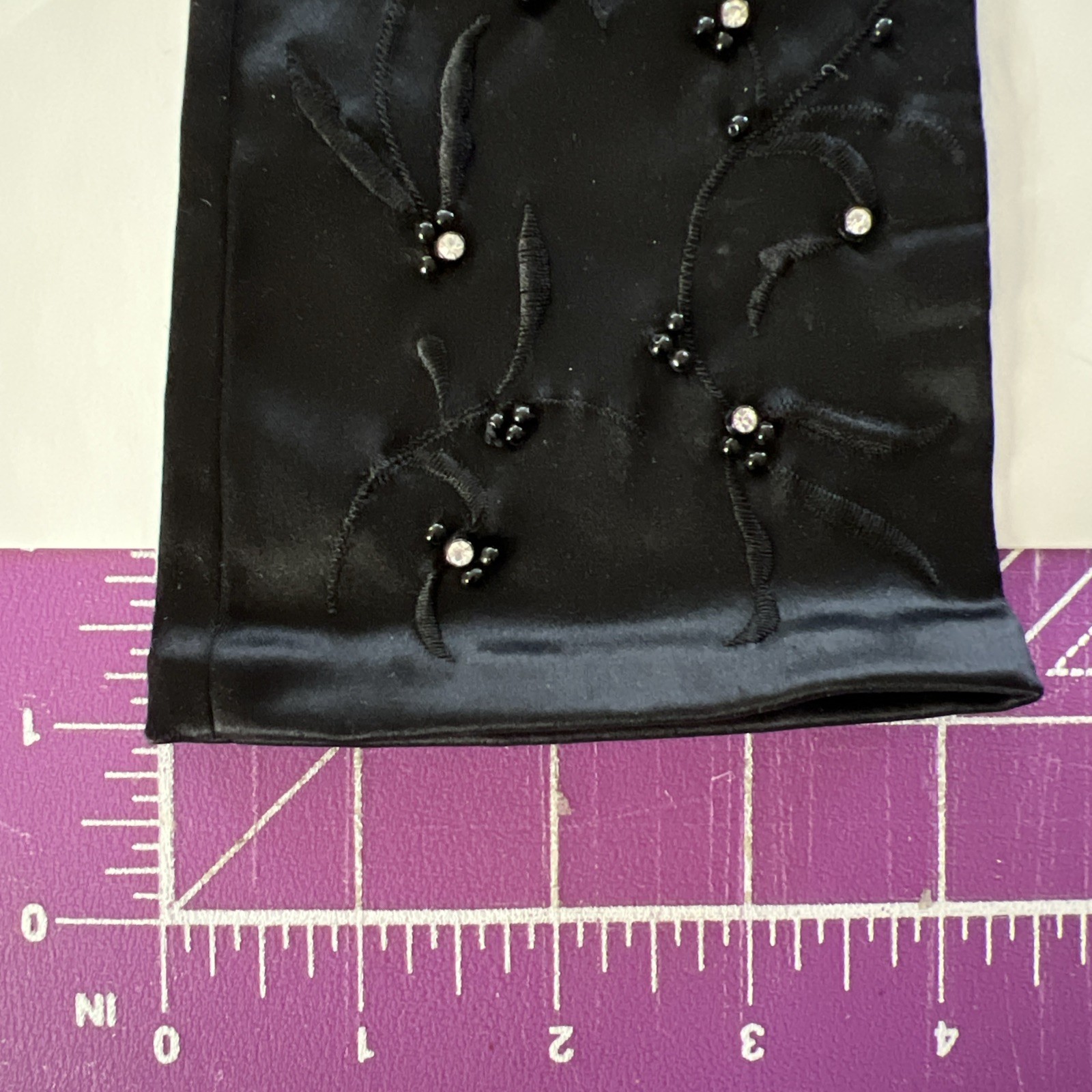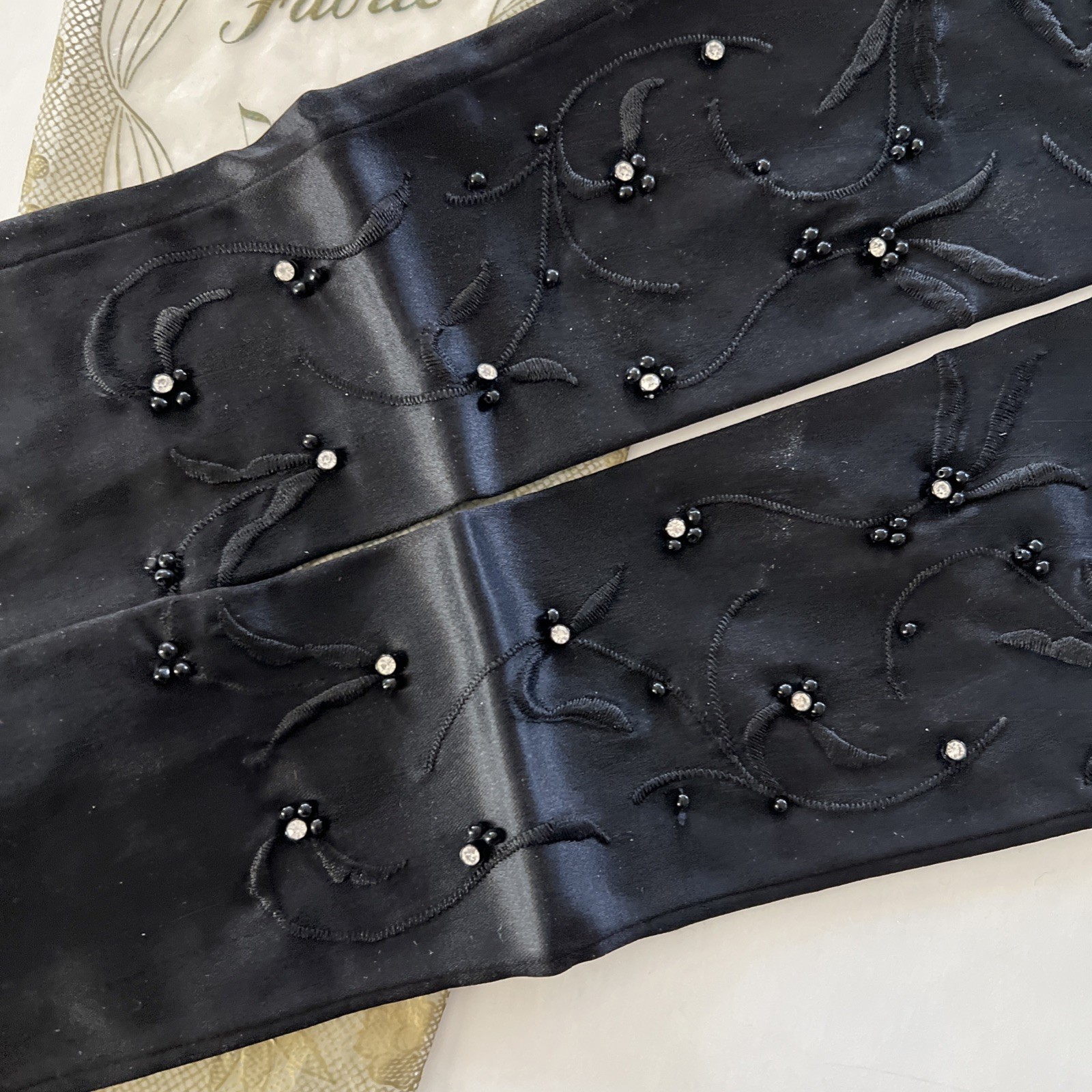 как выглядит Vintage Crescendoe Beaded Long Black Gloves 18 inch length Wonder Fabric Small фото