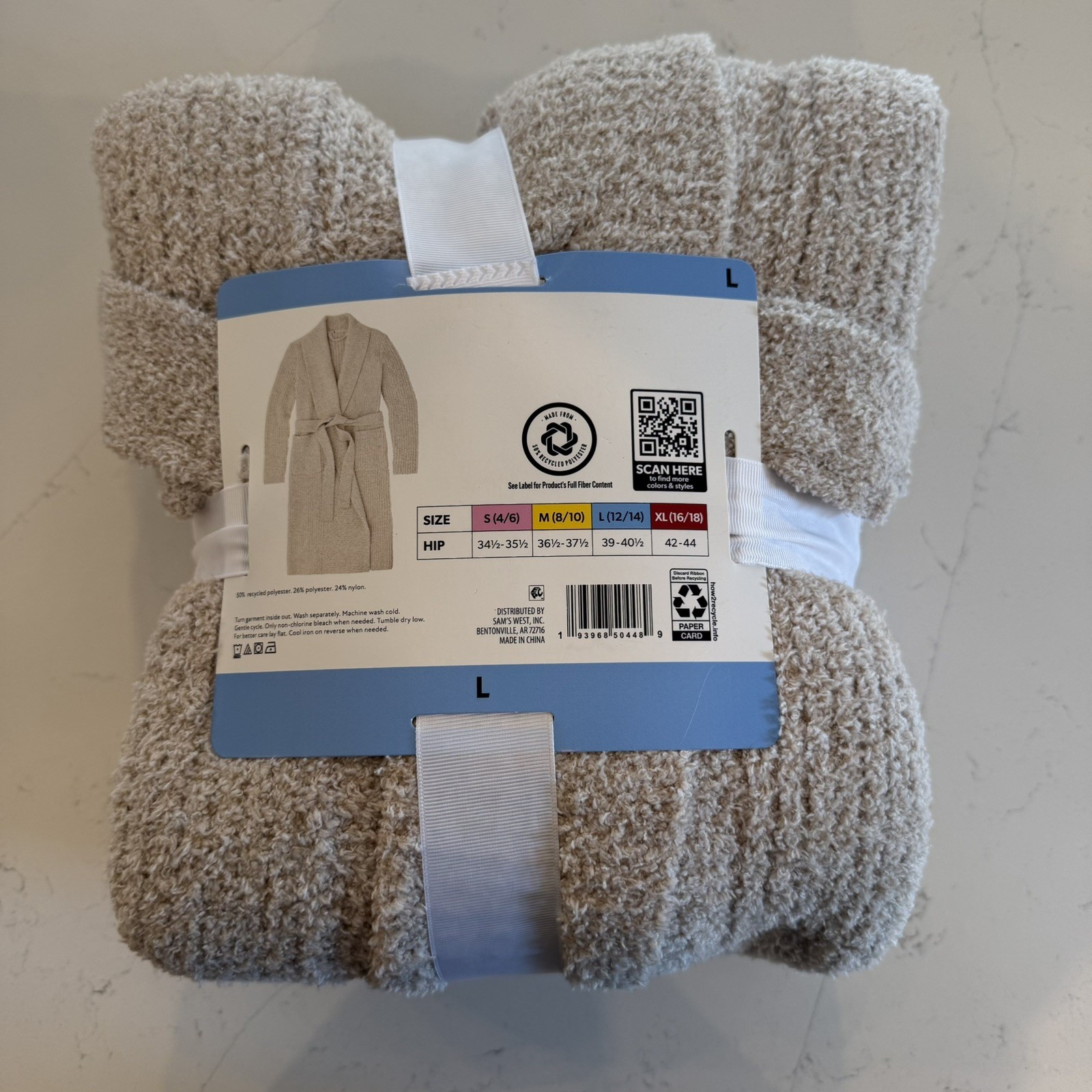 как выглядит Members Mark Womens Cozy Knit Robe Size L Cream фото