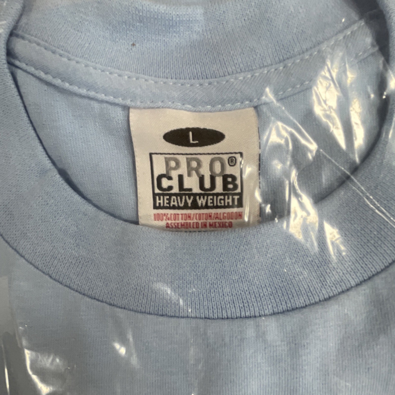 Pro Club Heavyweight Light Blue Men's T-Shirt Size L Short Sleeve box logo