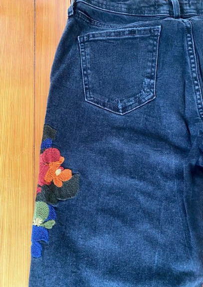 как выглядит Zara Basic Jeans Skinny Tapered Stretch Mid Rise Embroidered Floral Size 6 фото