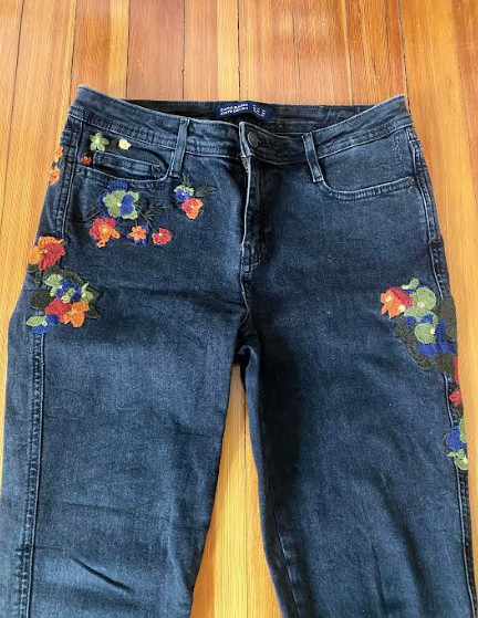 Zara Basic Jeans Skinny Tapered Stretch Mid Rise Embroidered Floral Size 6