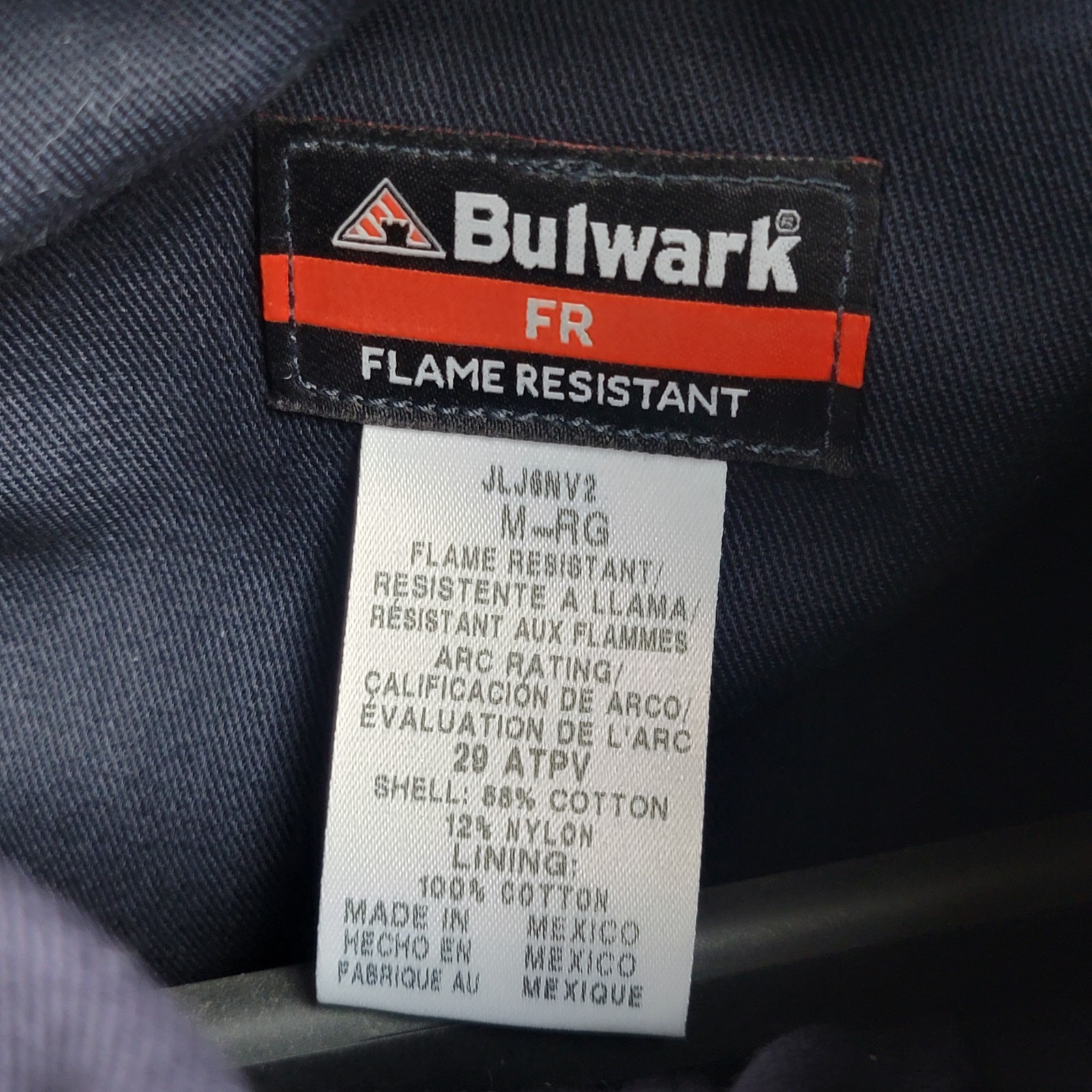Bulwark JLJ6NV2 FR Cat 3 2112 Jacket Navy Blue Coat M RG Flame Resistant