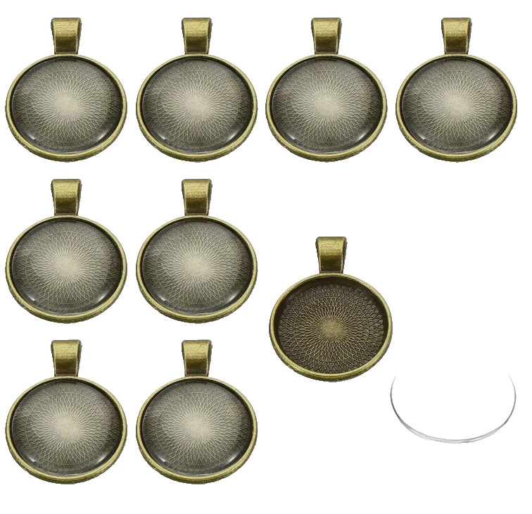 30pcs 25mm Round Antique Gold Bezel Pendant Trays Plus 30ps Cabochon Glass