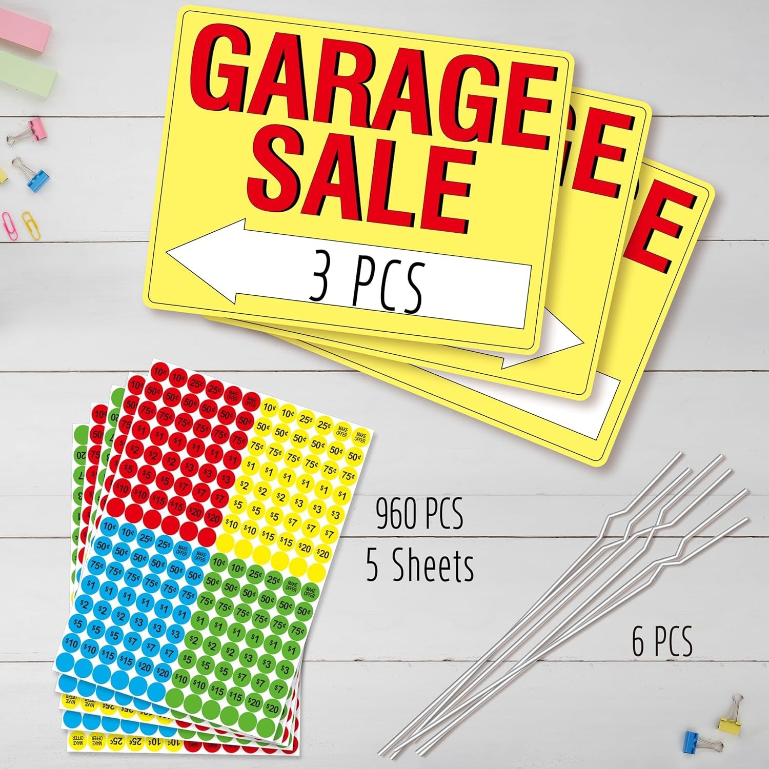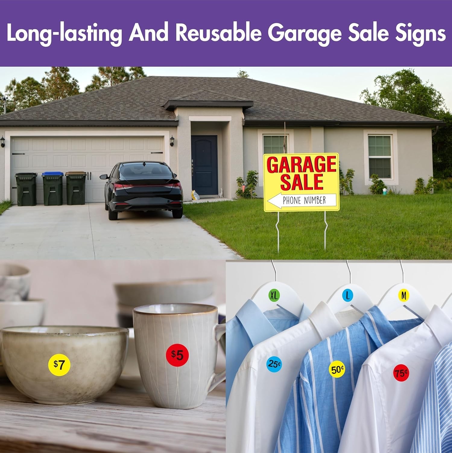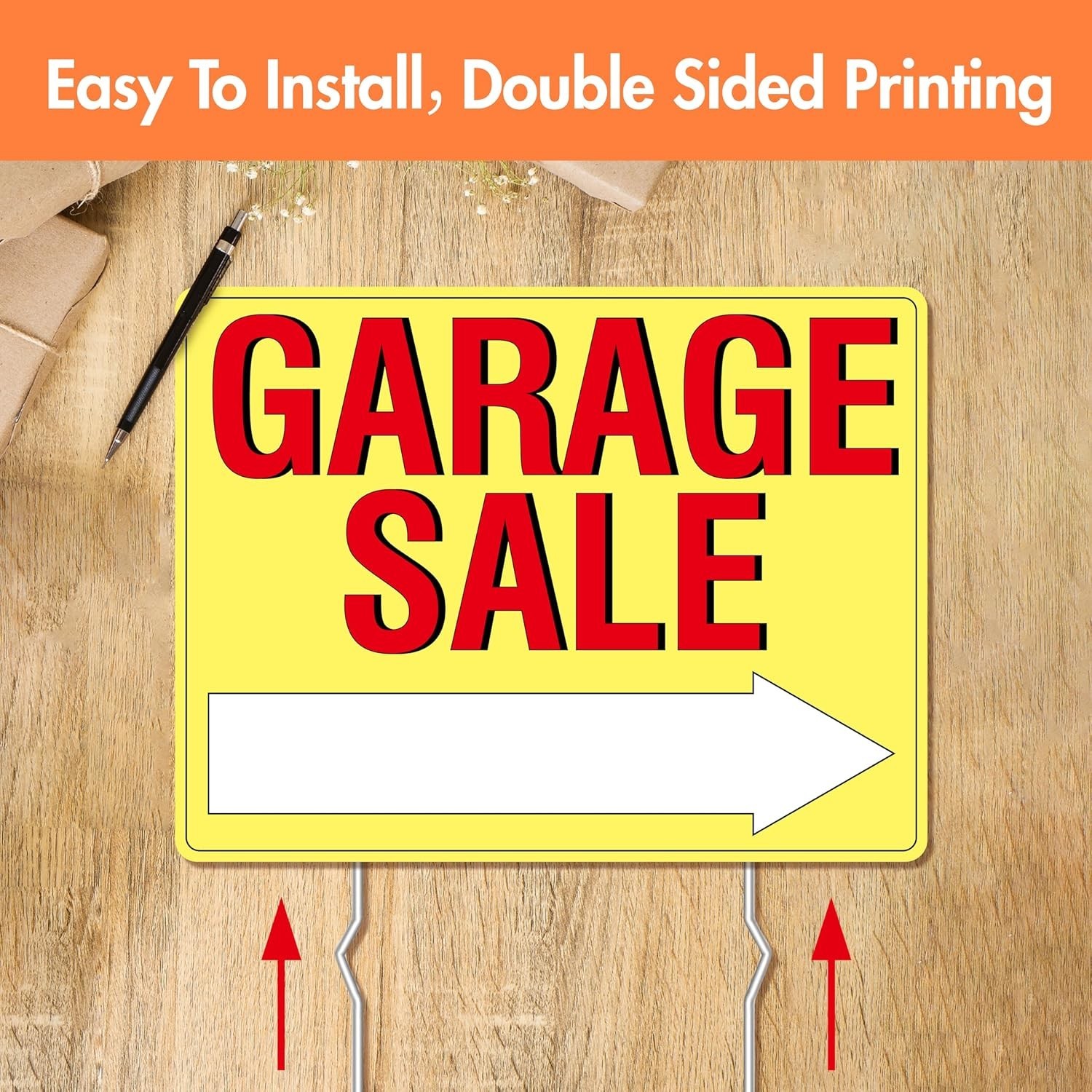 Garage Sale Sign, 3PCS Double Sided Yard Sale Signs with 6 Metal Stakes 960...