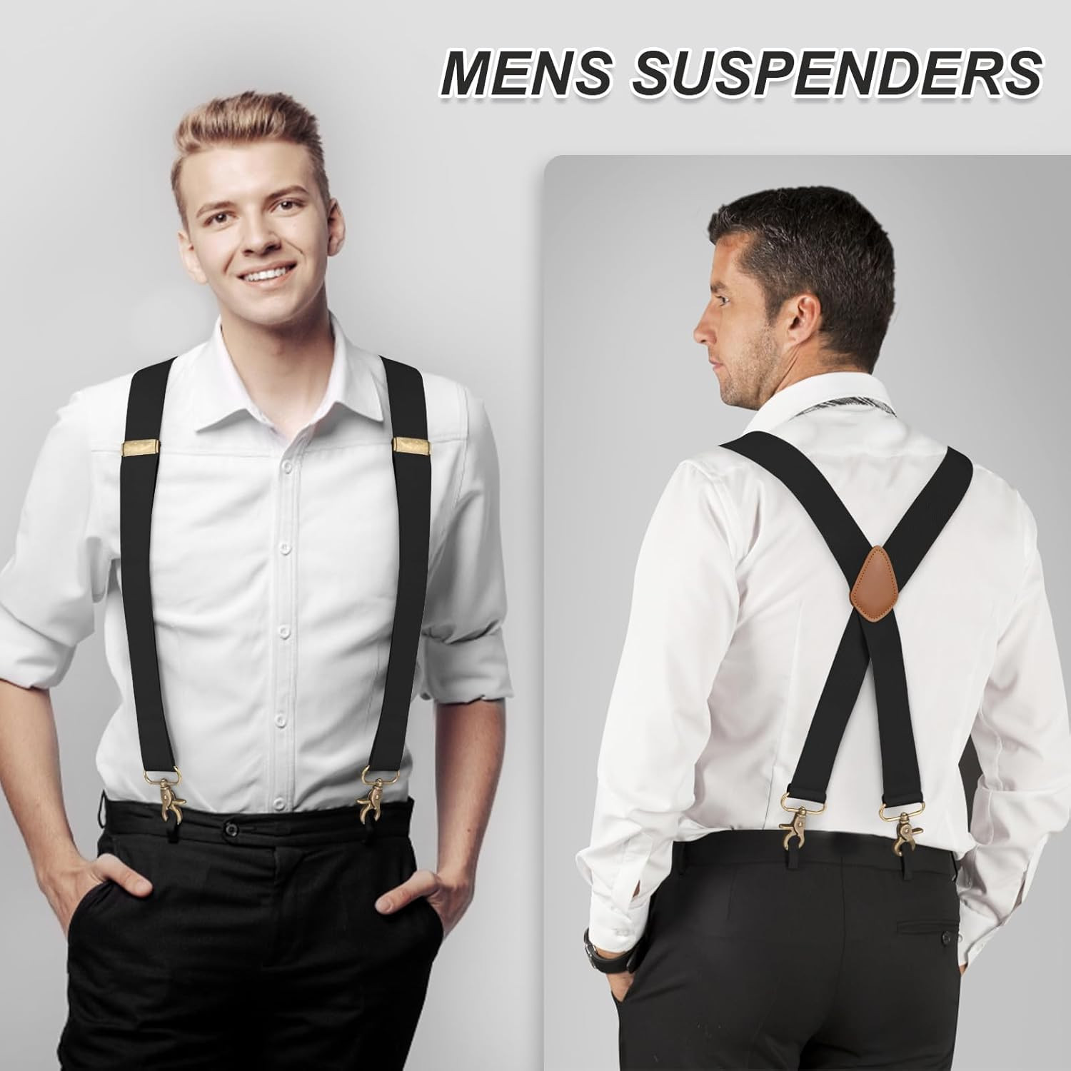 Fasker Suspenders for Men Heavy Duty 1.4 Inch Adjustable Elastic Straps X-Back M