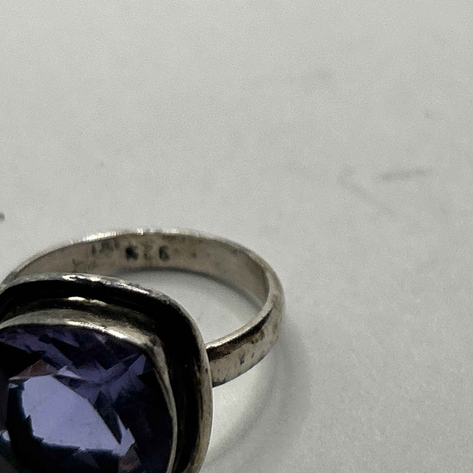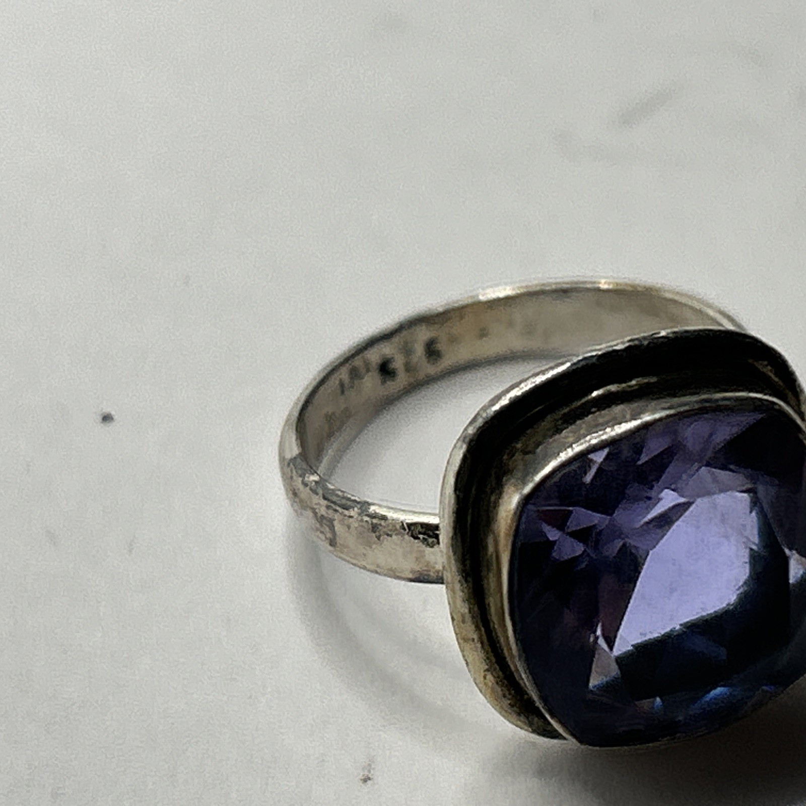 925 Sterling Silver Amethyst Square stone Ring Size 6
