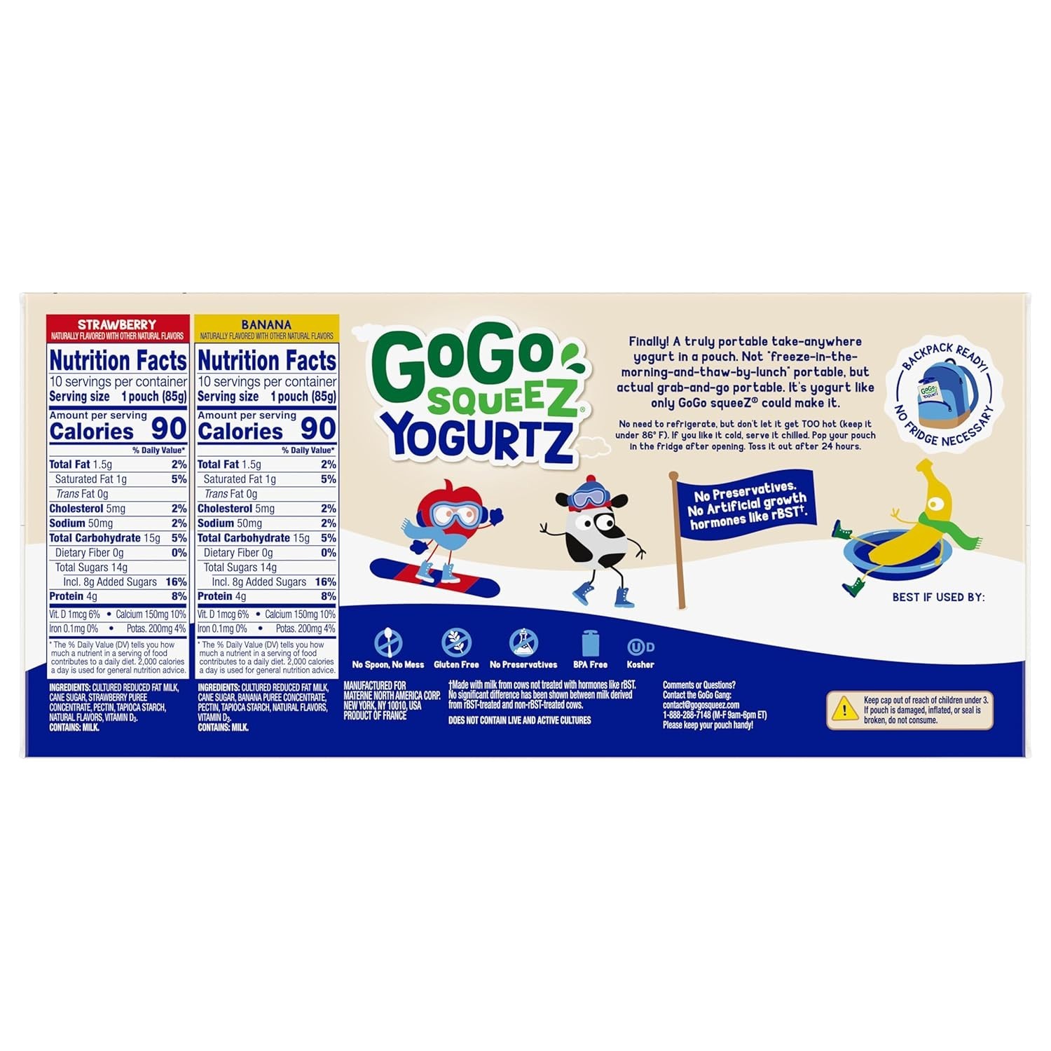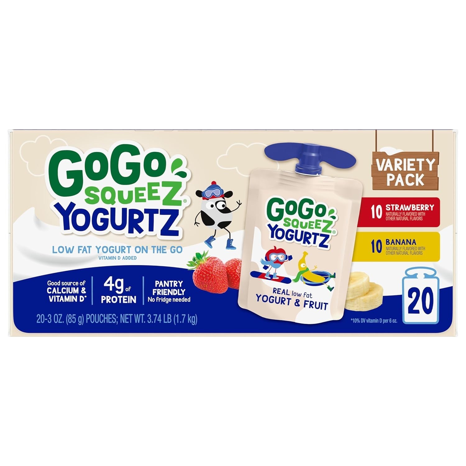 Portable 20 Pack - YogurtZ Strawberry Banana Snack Pouches, BPA Free Healthy