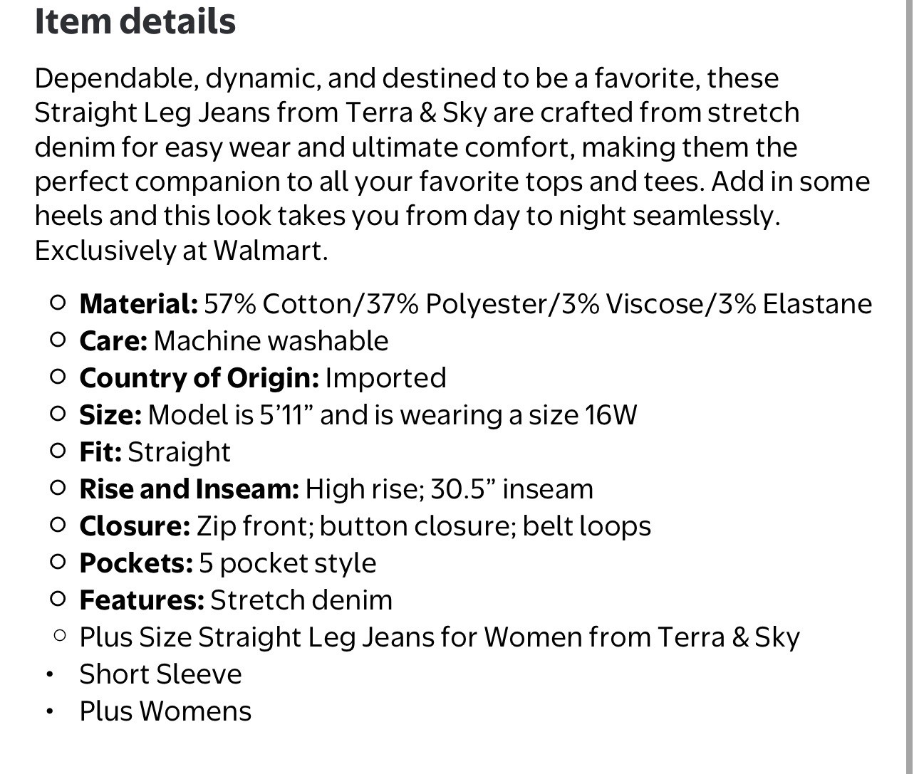 как выглядит Terra Sky 18W Plus Core Straight Leg Lt Wash High Rise NWT фото
