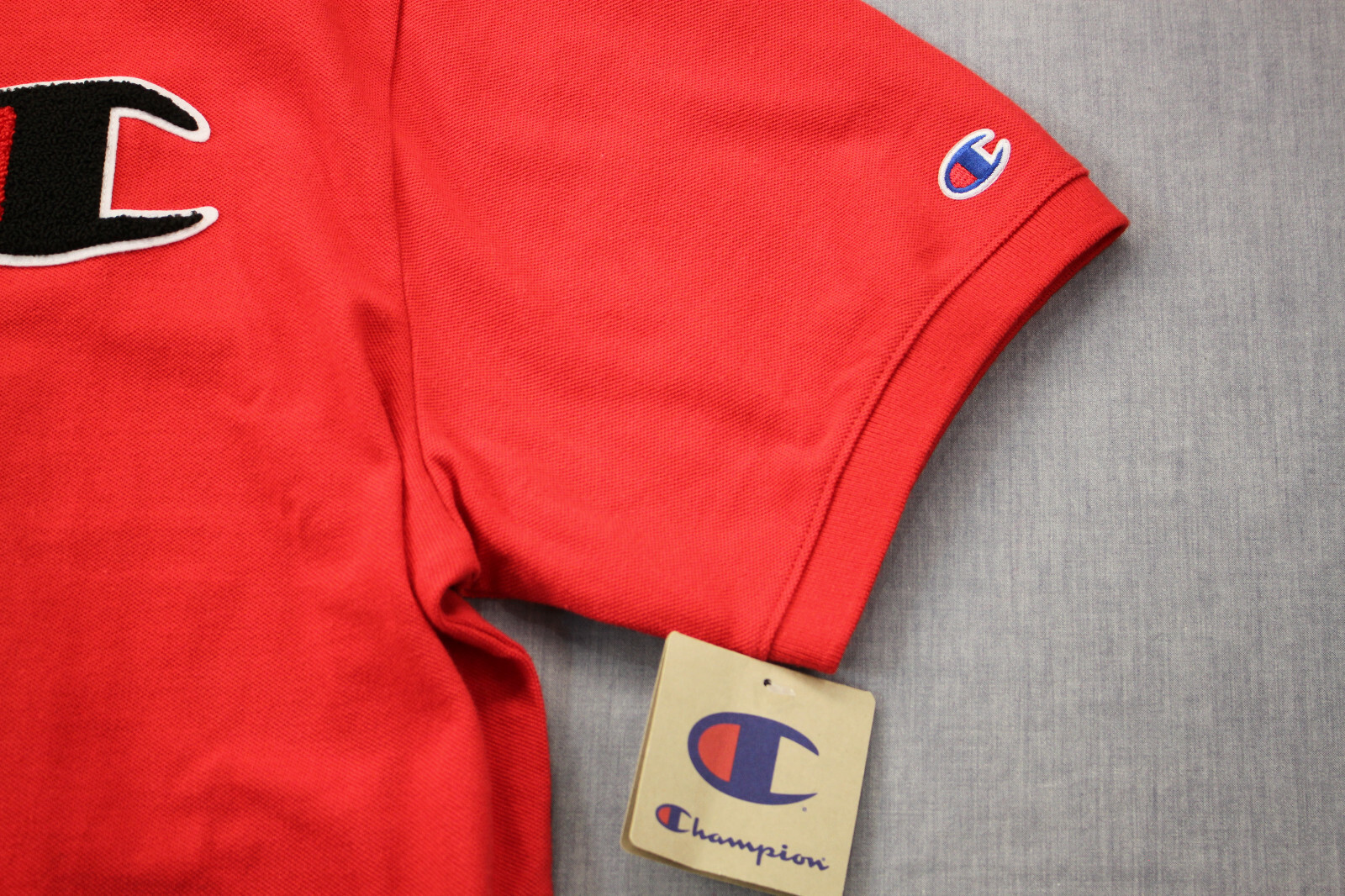 как выглядит Champion Mens Red Huge Logo Back Front Cotton SS Polo Shirt NWT S M L XL фото