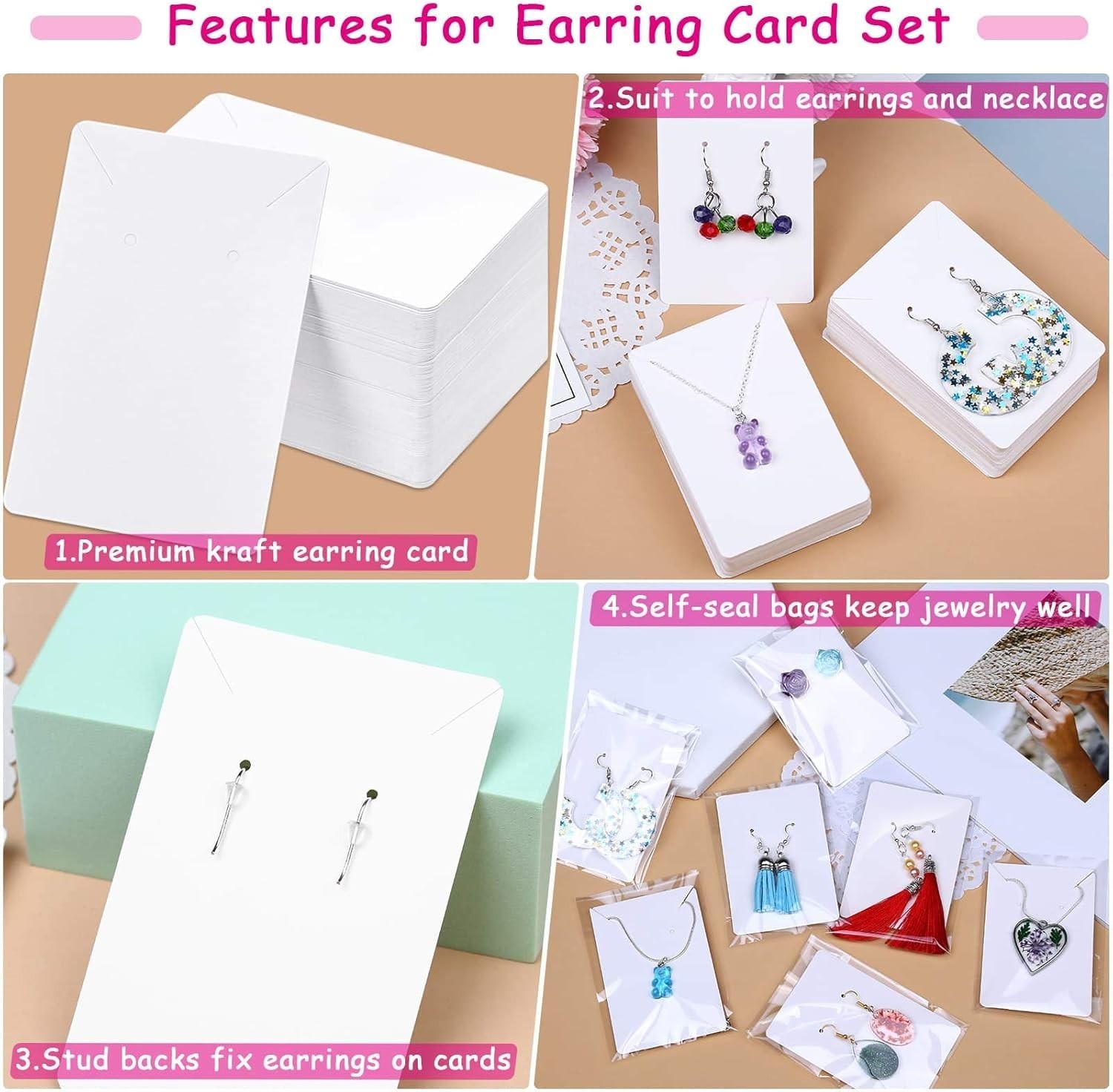 400 Pcs White Earring Cards Packaging Supplies Kit Earring Display Holder Cards