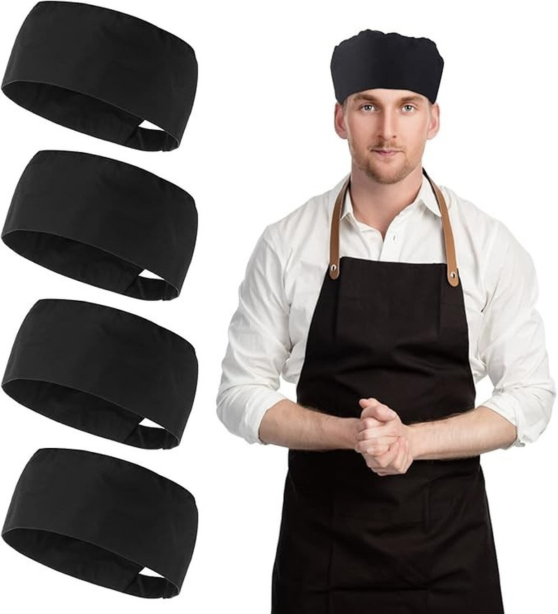 Yolev 4 Pcs Unisex Chef Hats Adjustable Kitchen Cooking Caps One Size, Black