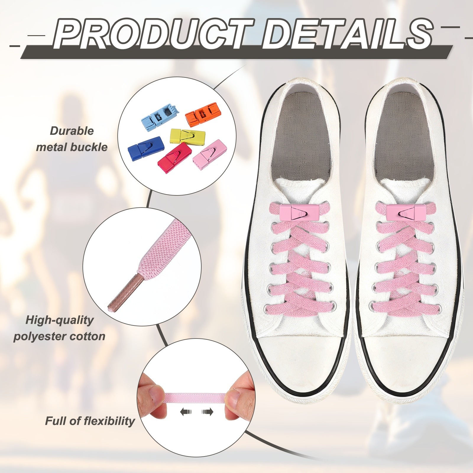 No Tie Shoelaces with 2 Metal Triangle Buckle Clips, 1Pair Rose Red