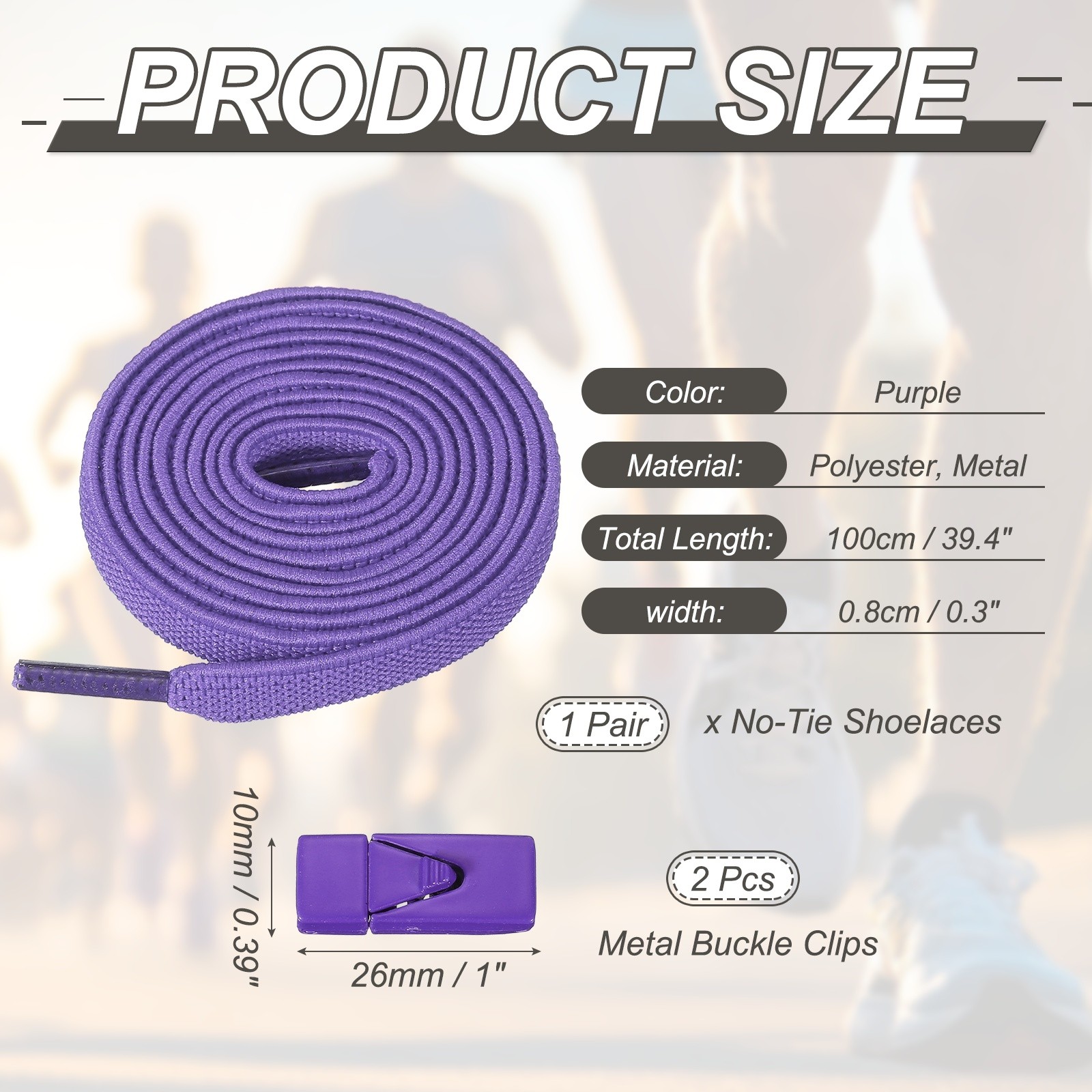 No Tie Shoelaces with 2 Metal Triangle Buckle Clips, 1Pair Purple
