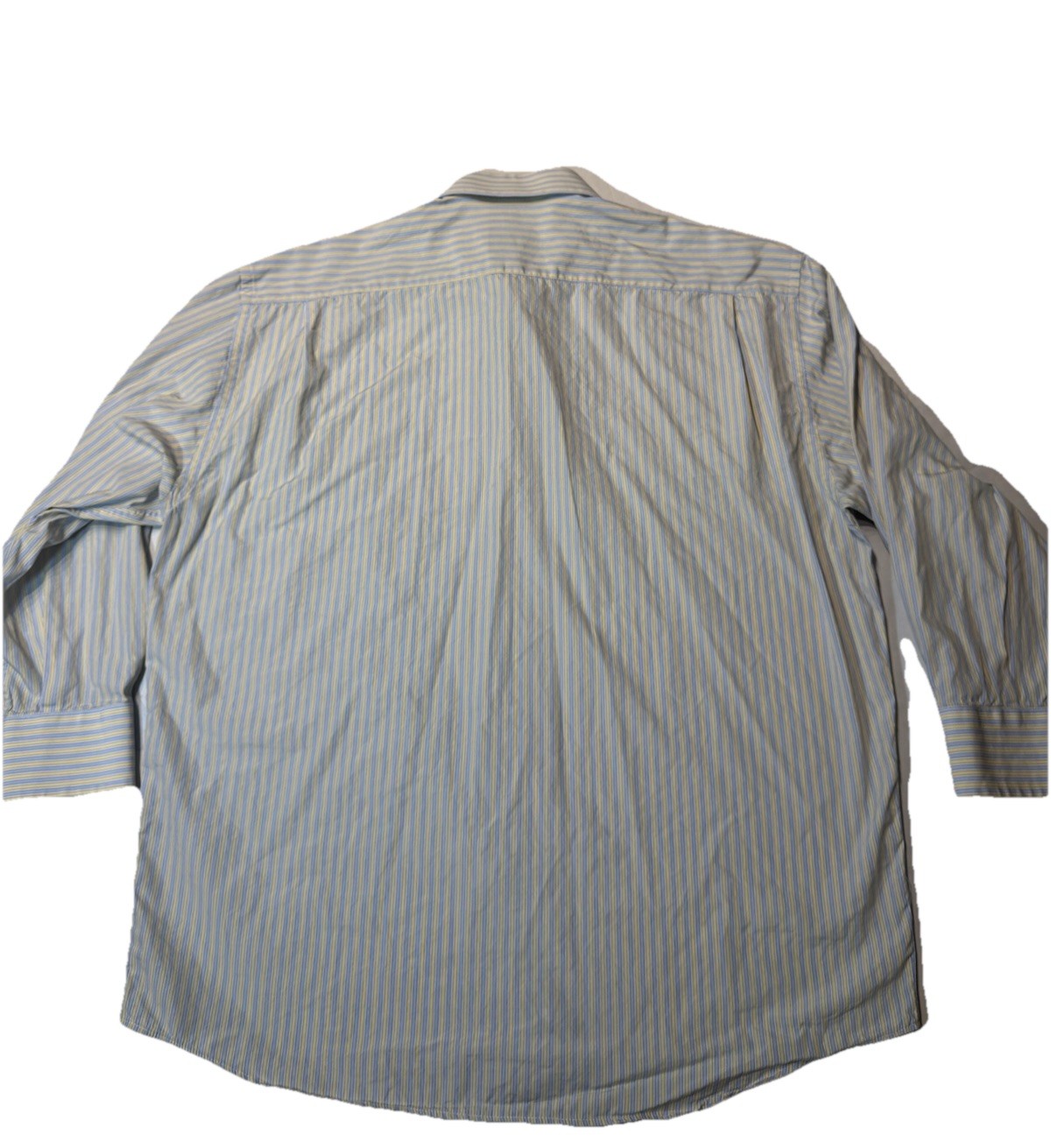 Canali Shirt Men s 17 / 43 Yellow Blue White Striped Long Sleeve Dress Italy