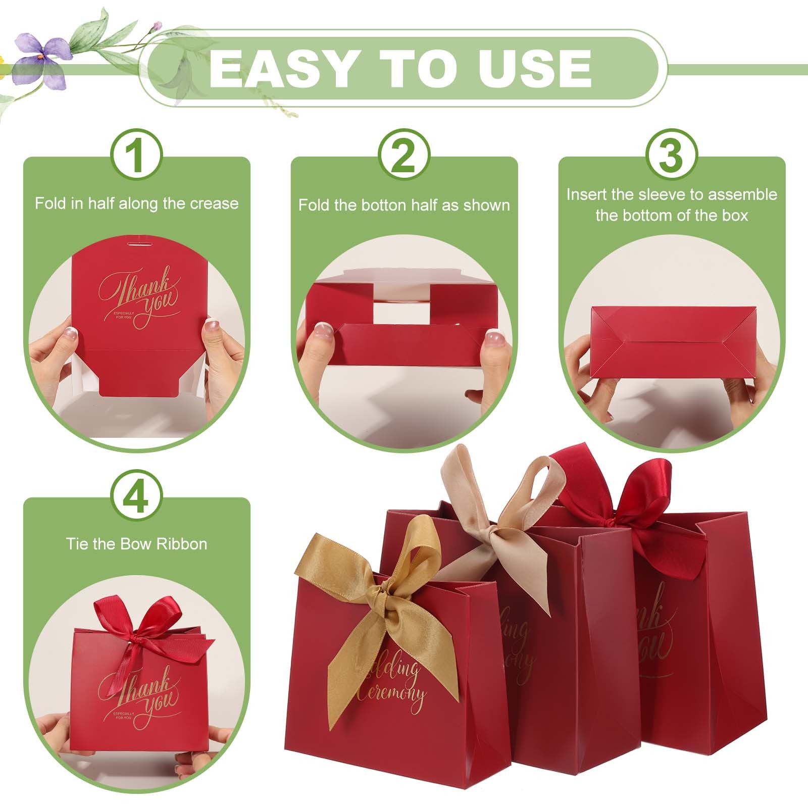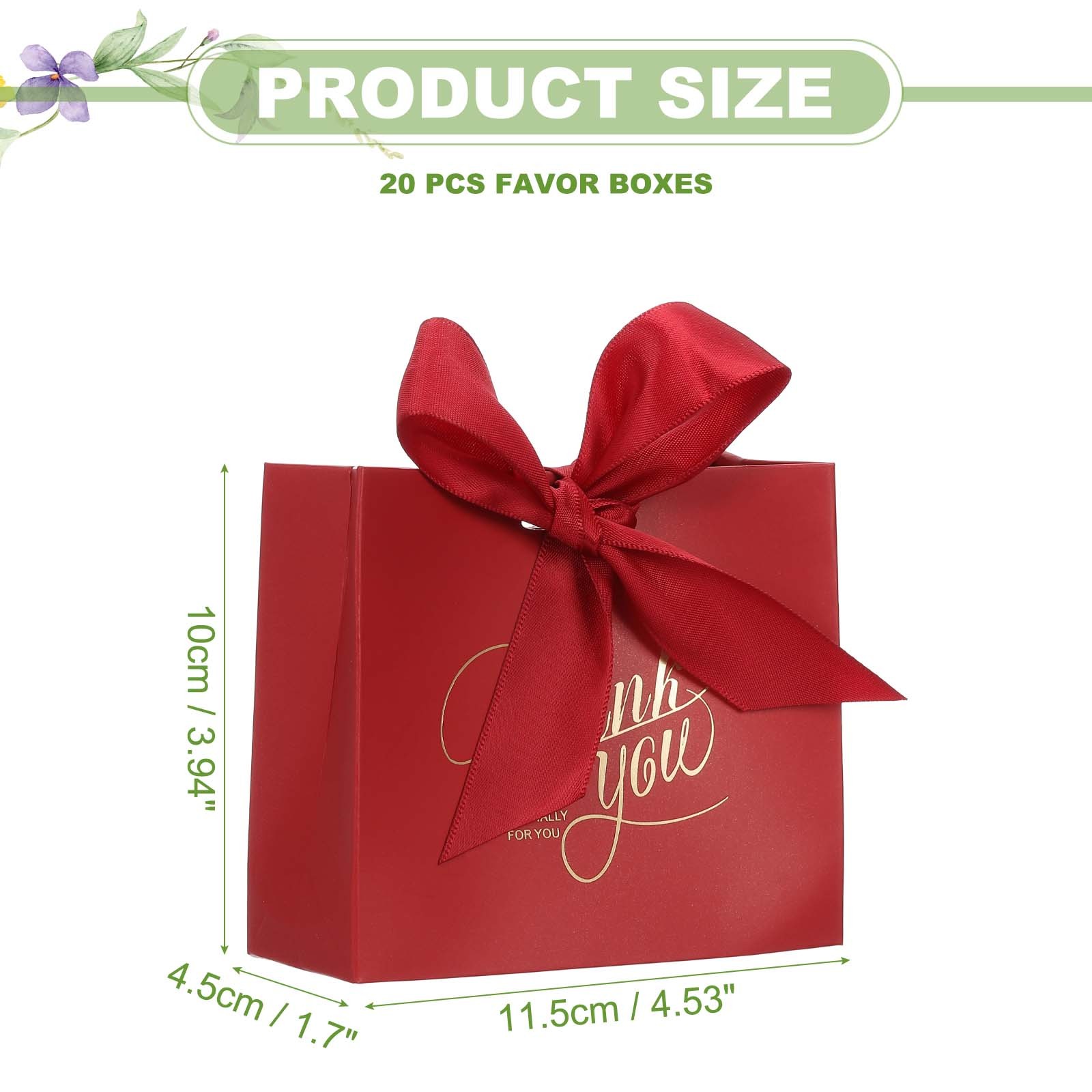 20 Pcs 4.5x1.8x4 Inch Thank You Gifts Boxes Candy Party Wine Red Ribbon
