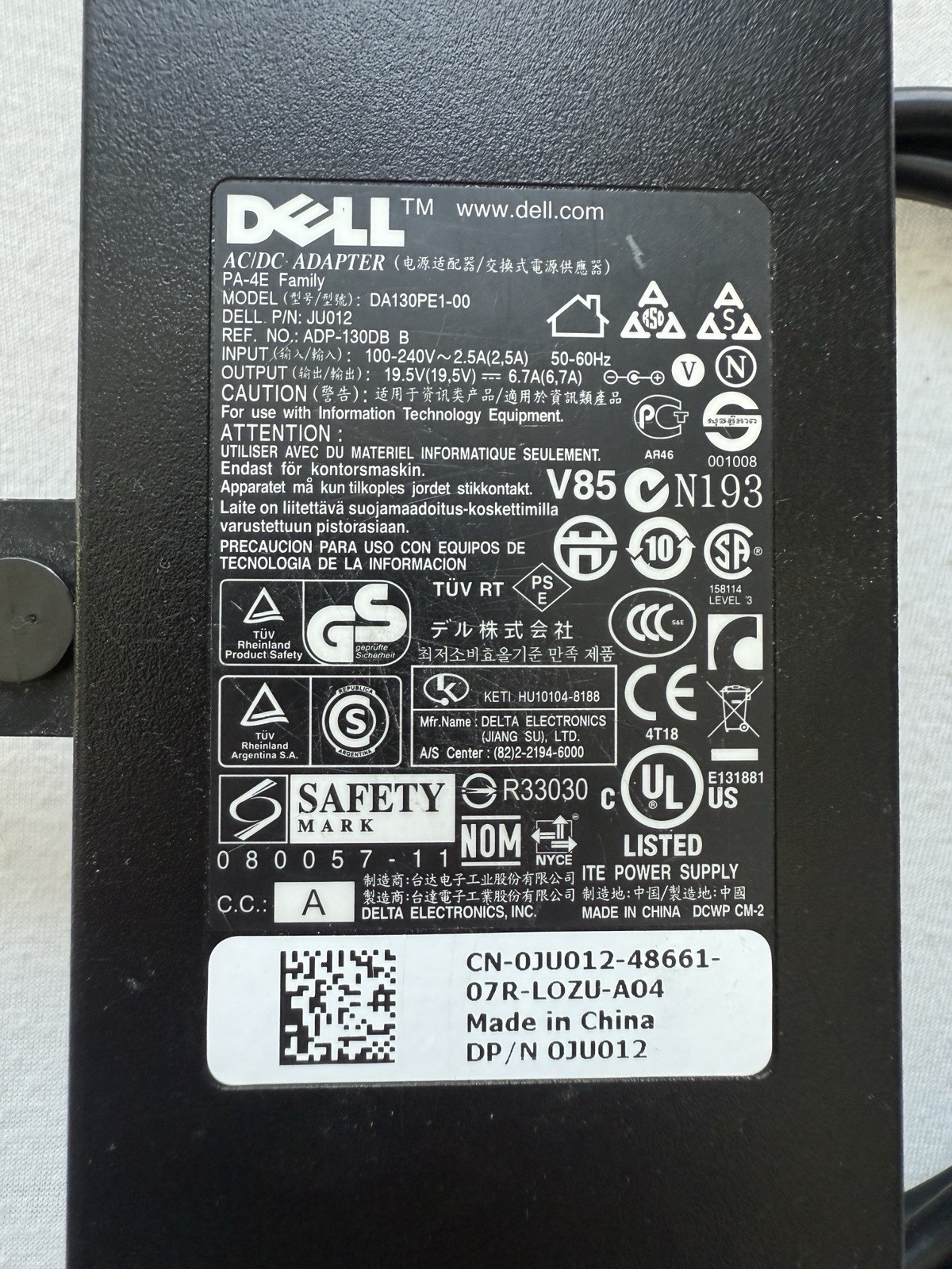 как выглядит DELL DA130PE1-00 19.5V 6.7A Genuine Original AC Power Adapter Charger фото