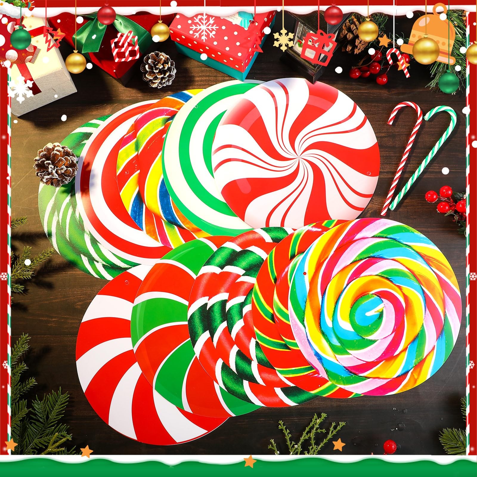 как выглядит 36 Pcs 7.9 Inch Peppermint Candy Christmas Outdoor Decorations Large Hanging ... фото